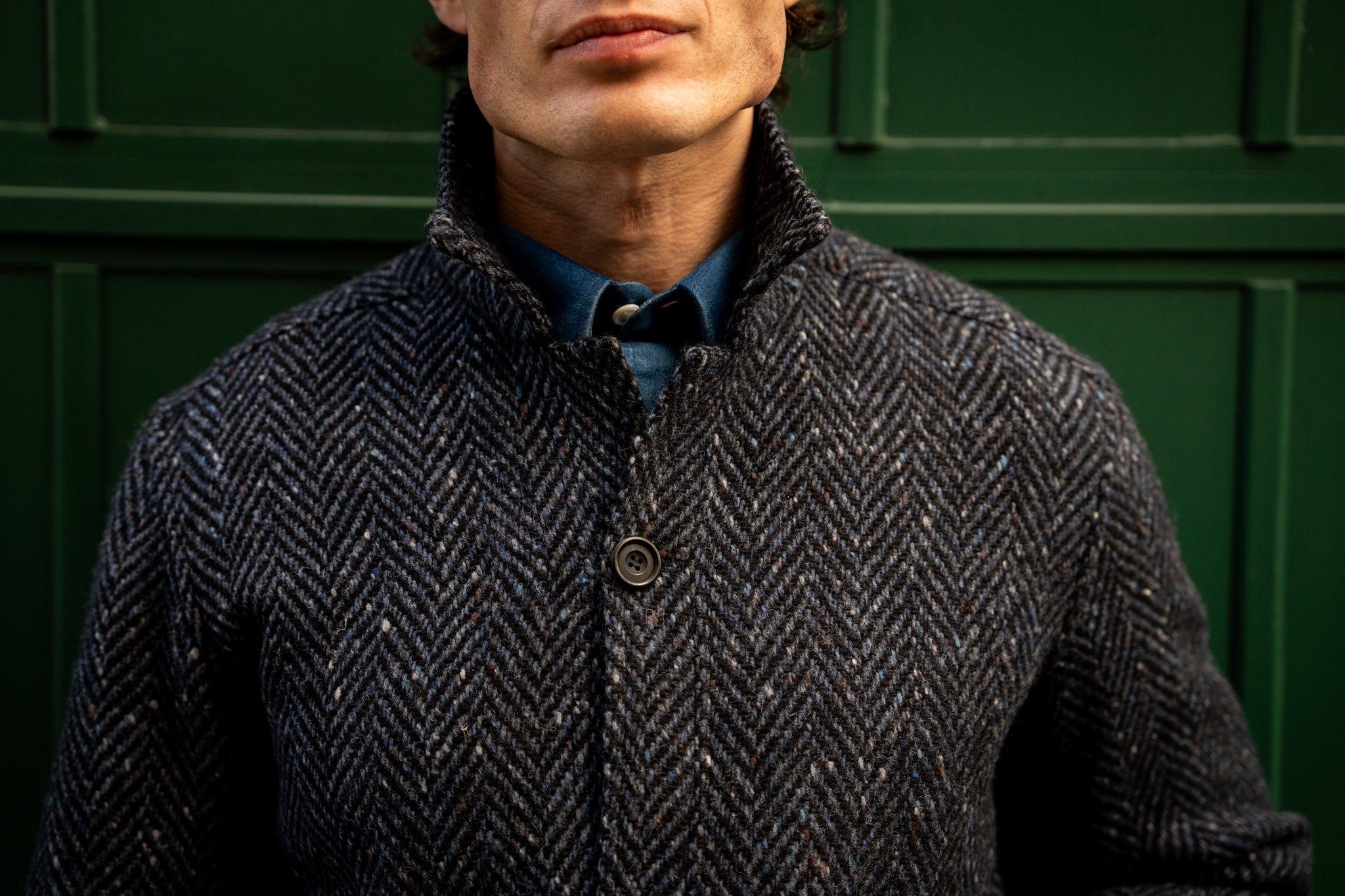Evolving from our ever popular jacket number two is this slightly longer version, cut for a more generous and easy fit. Woven in wool, this piece can be layered over a chunky sweater or worn underneath an overcoat during the colder months. Featuring a bold herringbone design , two patch pockets and one internal zipped pocket, the practicality of this versatile jacket will have you reaching for it time and time again.