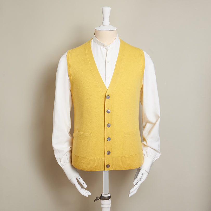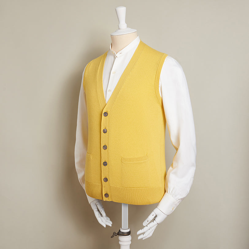 12-Gauge Cashmere Blend Waistcoat With Pockets In Yellow