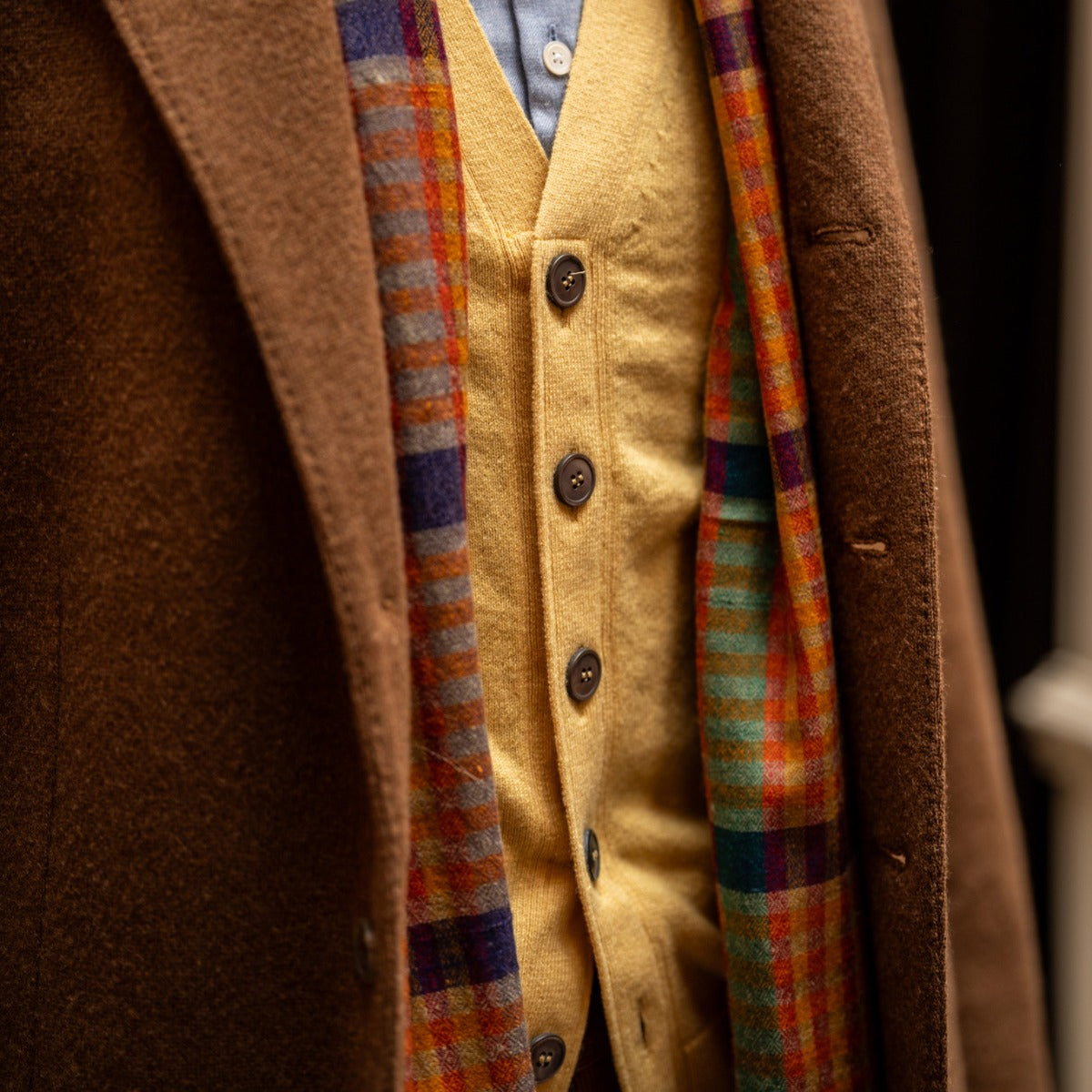 This elegant knitted waistcoat is a tactile mix of merino with a little cashmere and is the perfect layer underneath a blazer or sports jacket. Featuring a six button front and two generous pockets, the slim cut will add warmth without bulk to your tailored winter ensembles.