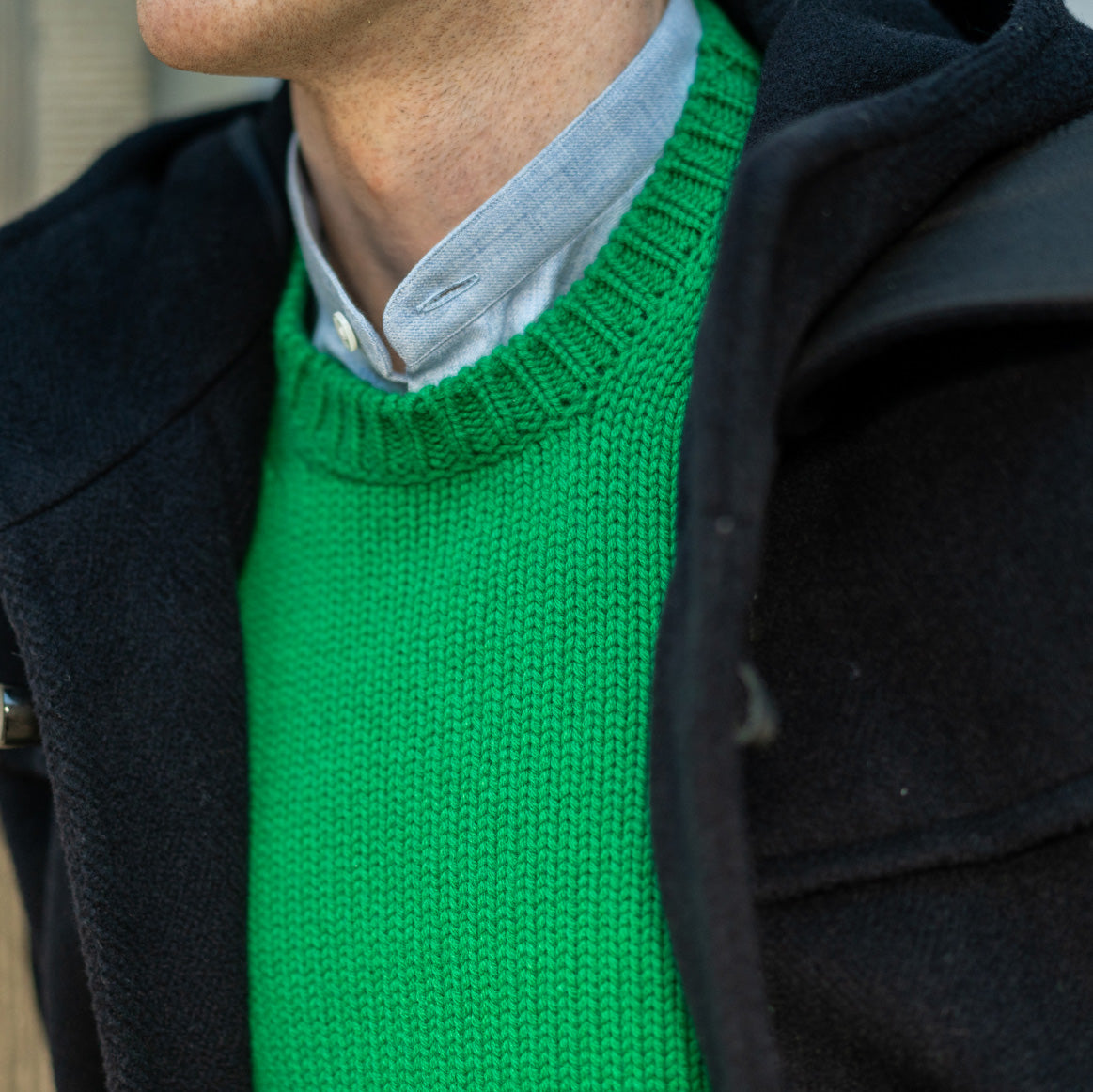 12Ply Plain Knit Cashmere Sweater In Emerald