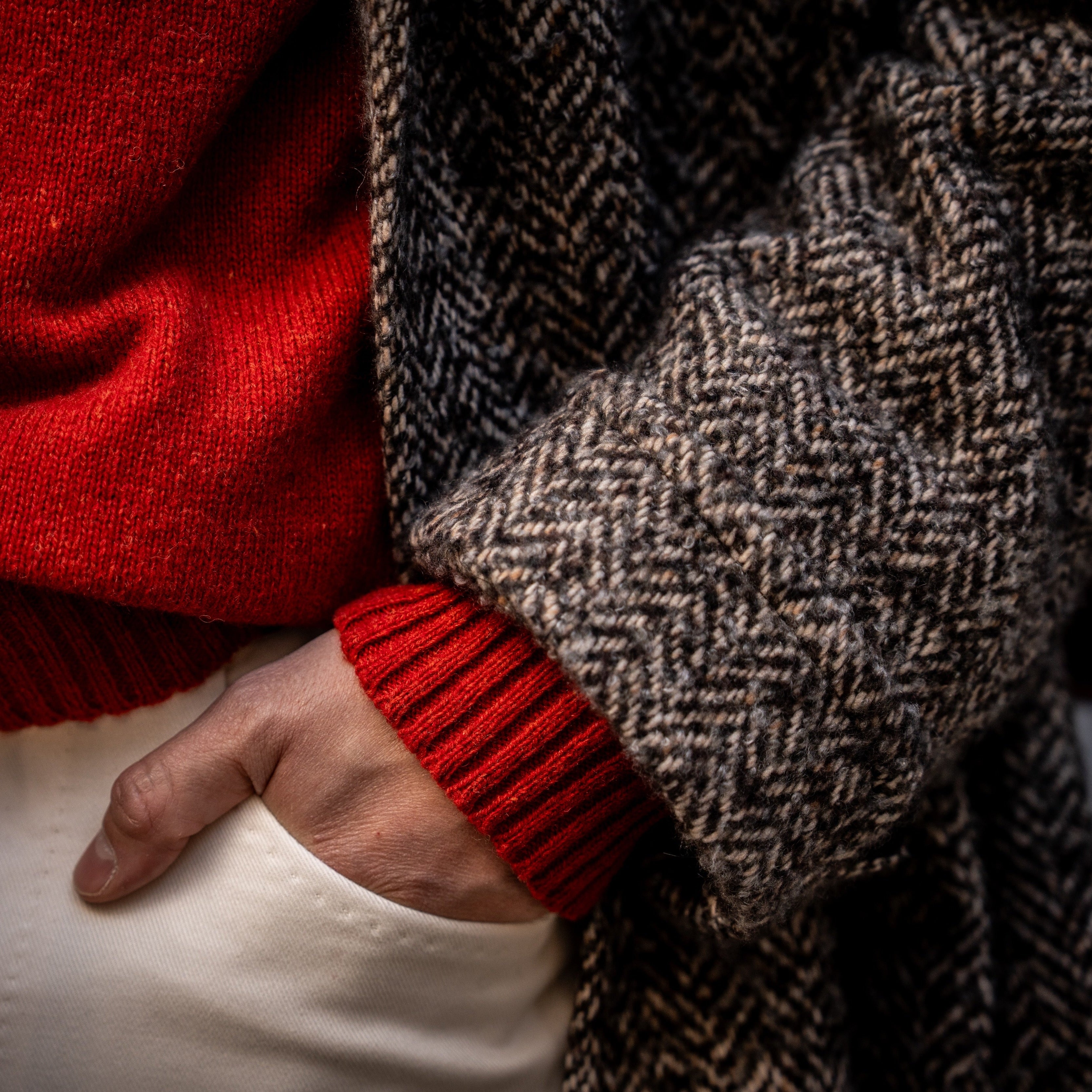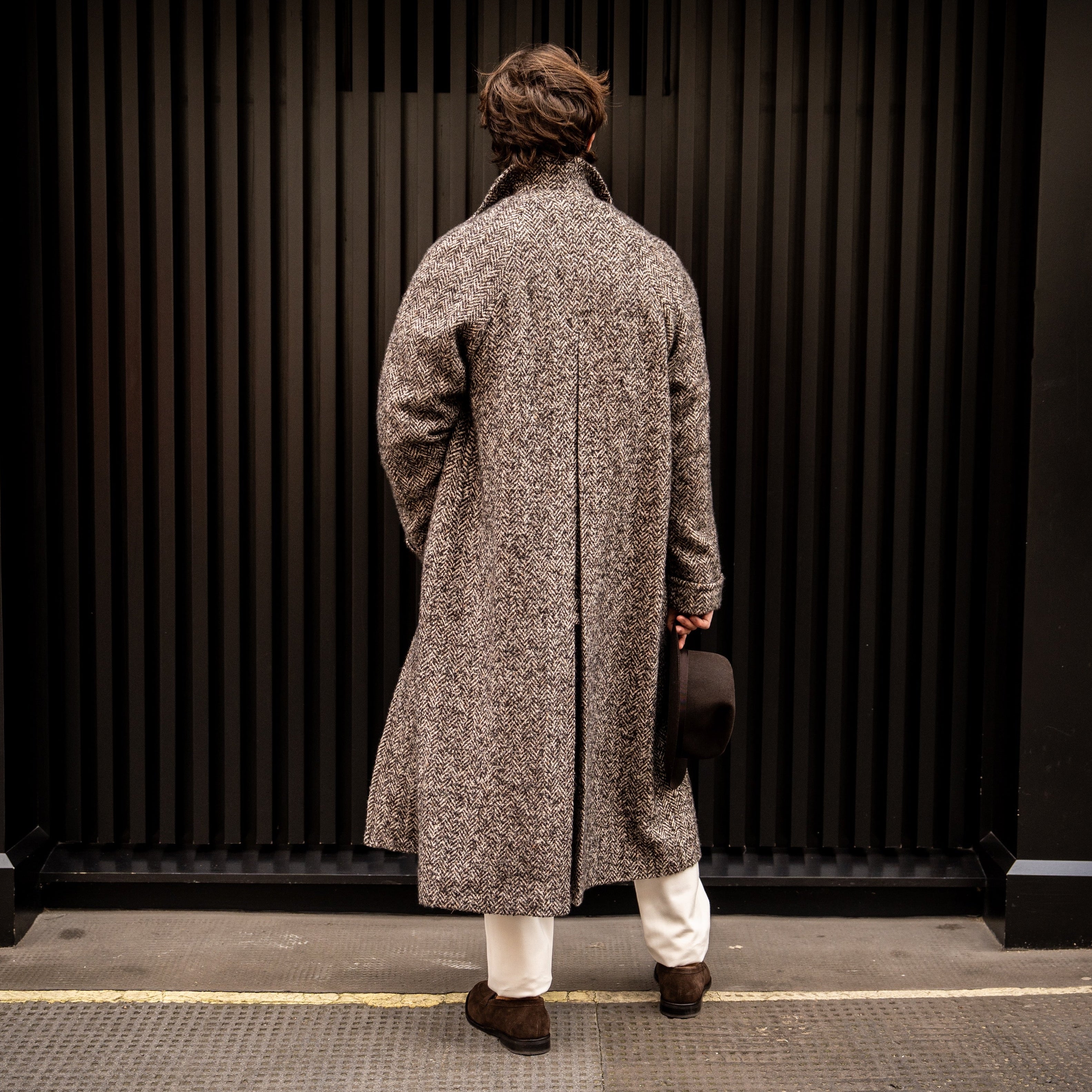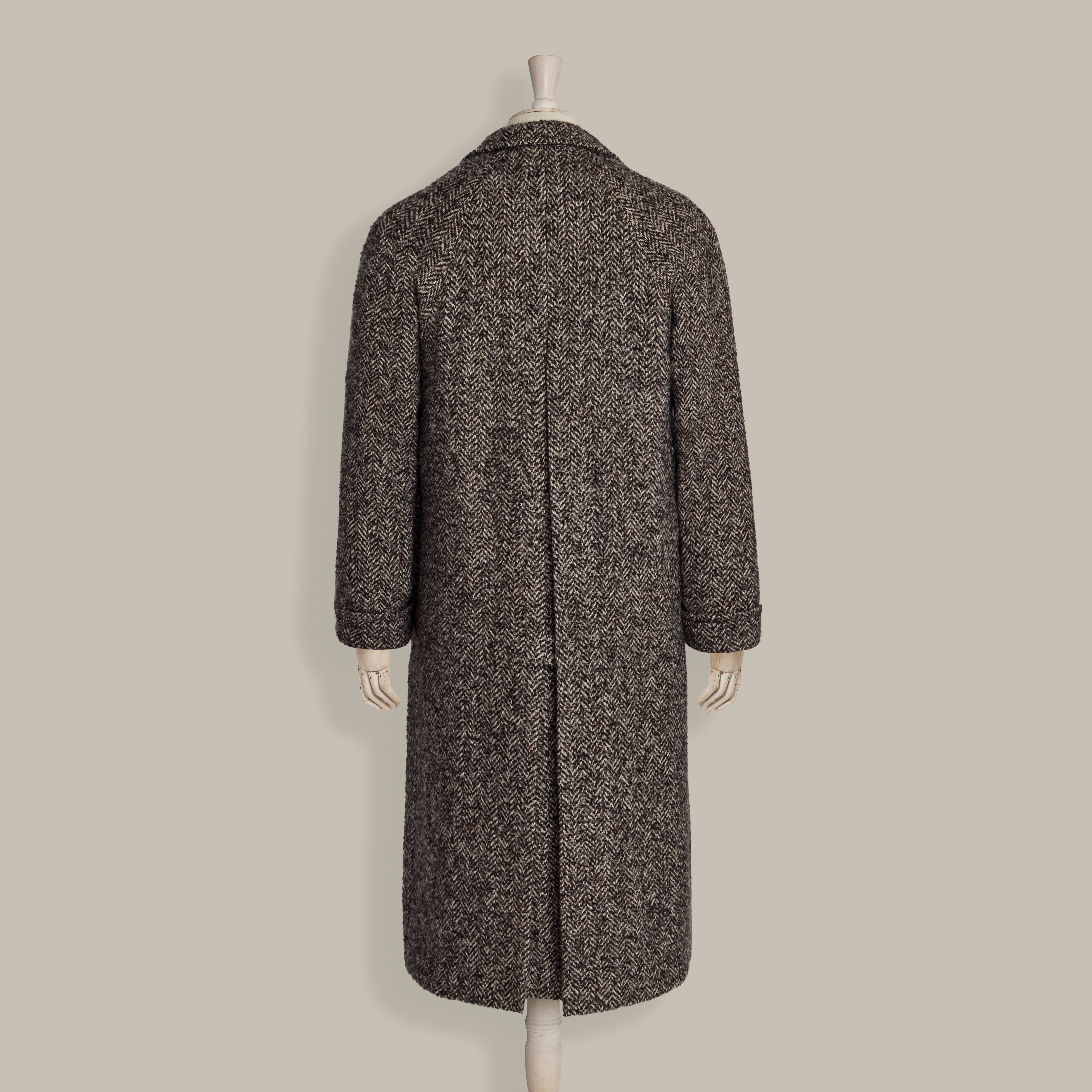 Woven form a blend of wool, cashmere and silk this herringbone overcoat has a raglan sleeve and deep middle back vent creating a flattering silhouette with easy movement. It can be layered over a jacket for a slightly smarter feel or with a heavy knit sweater for a casual weekend look.