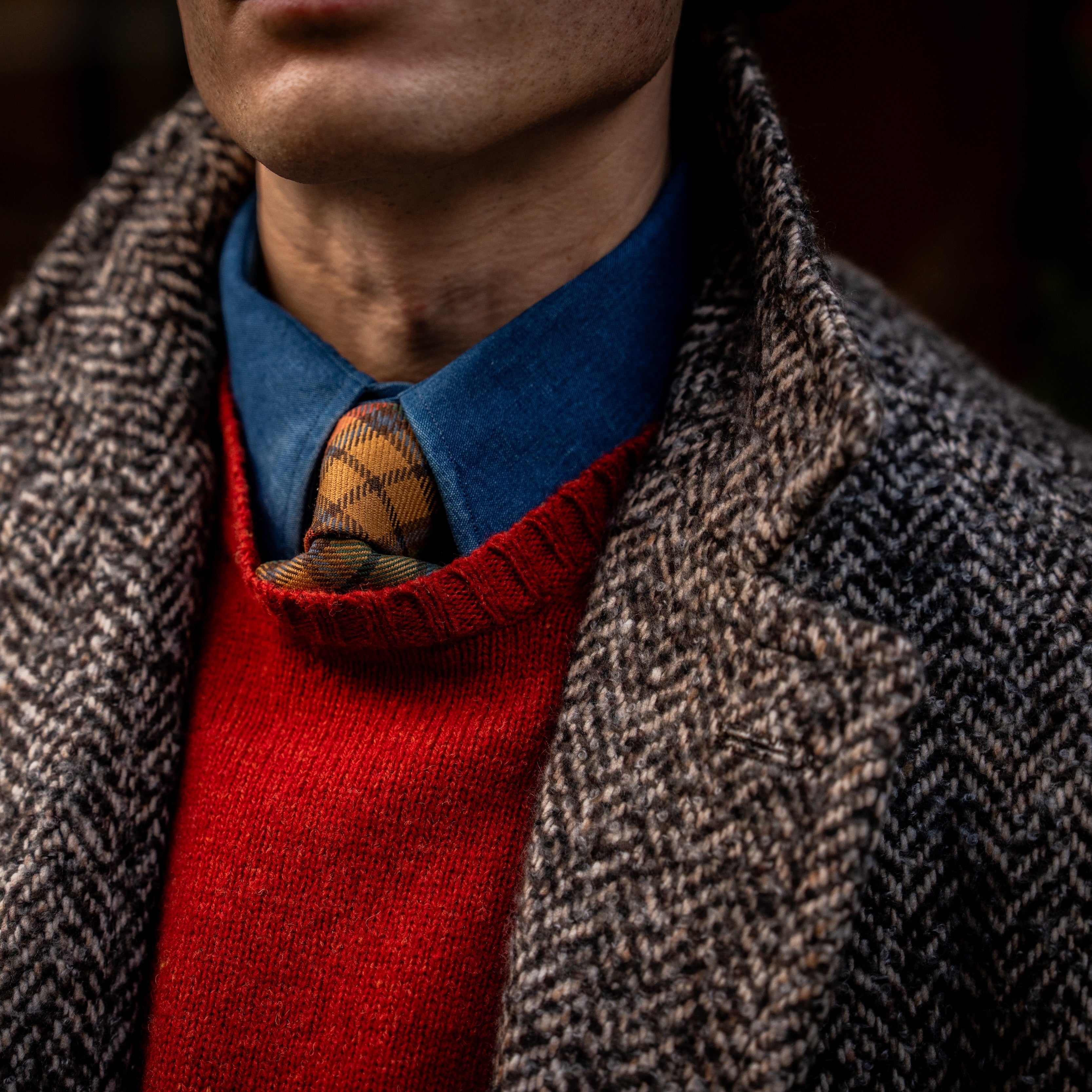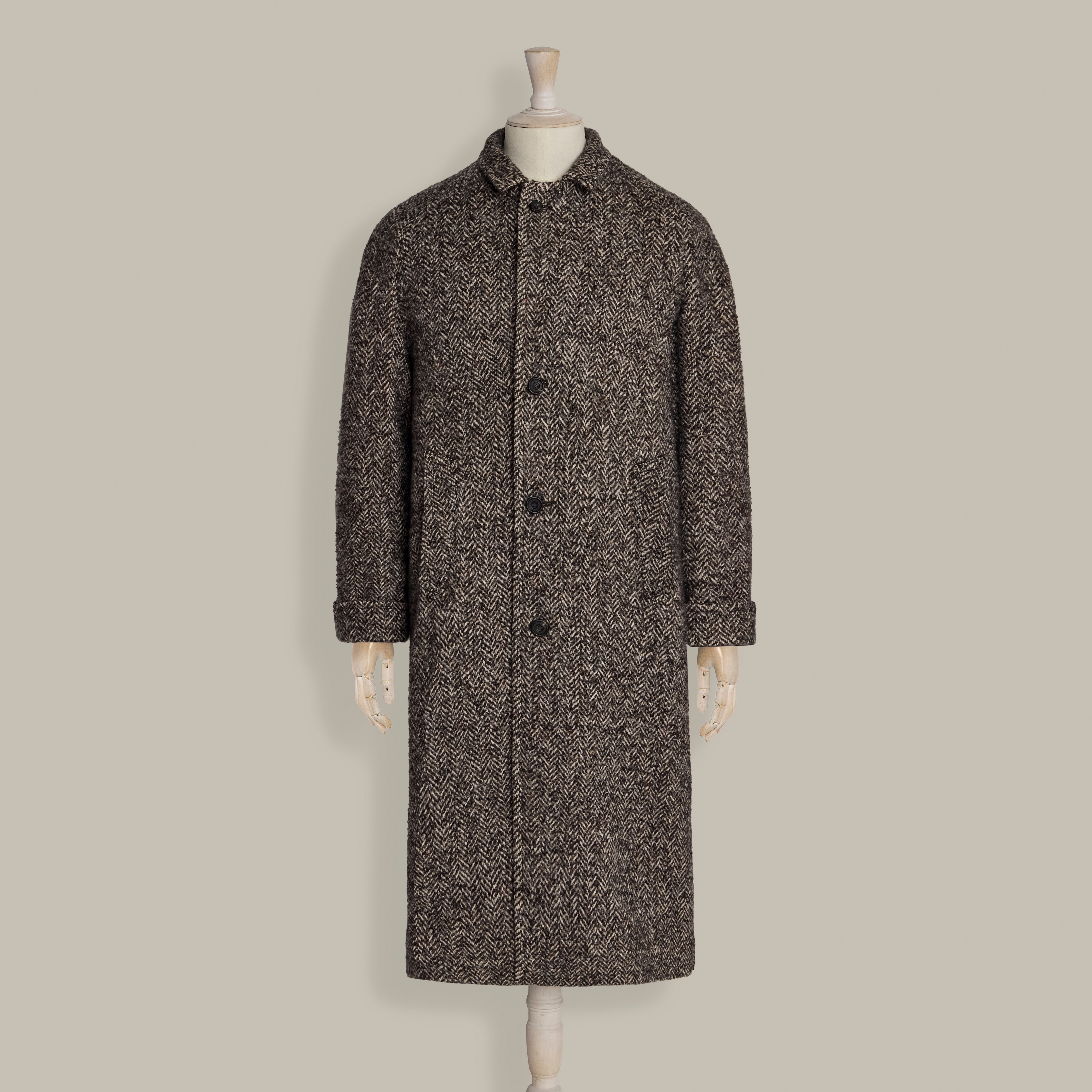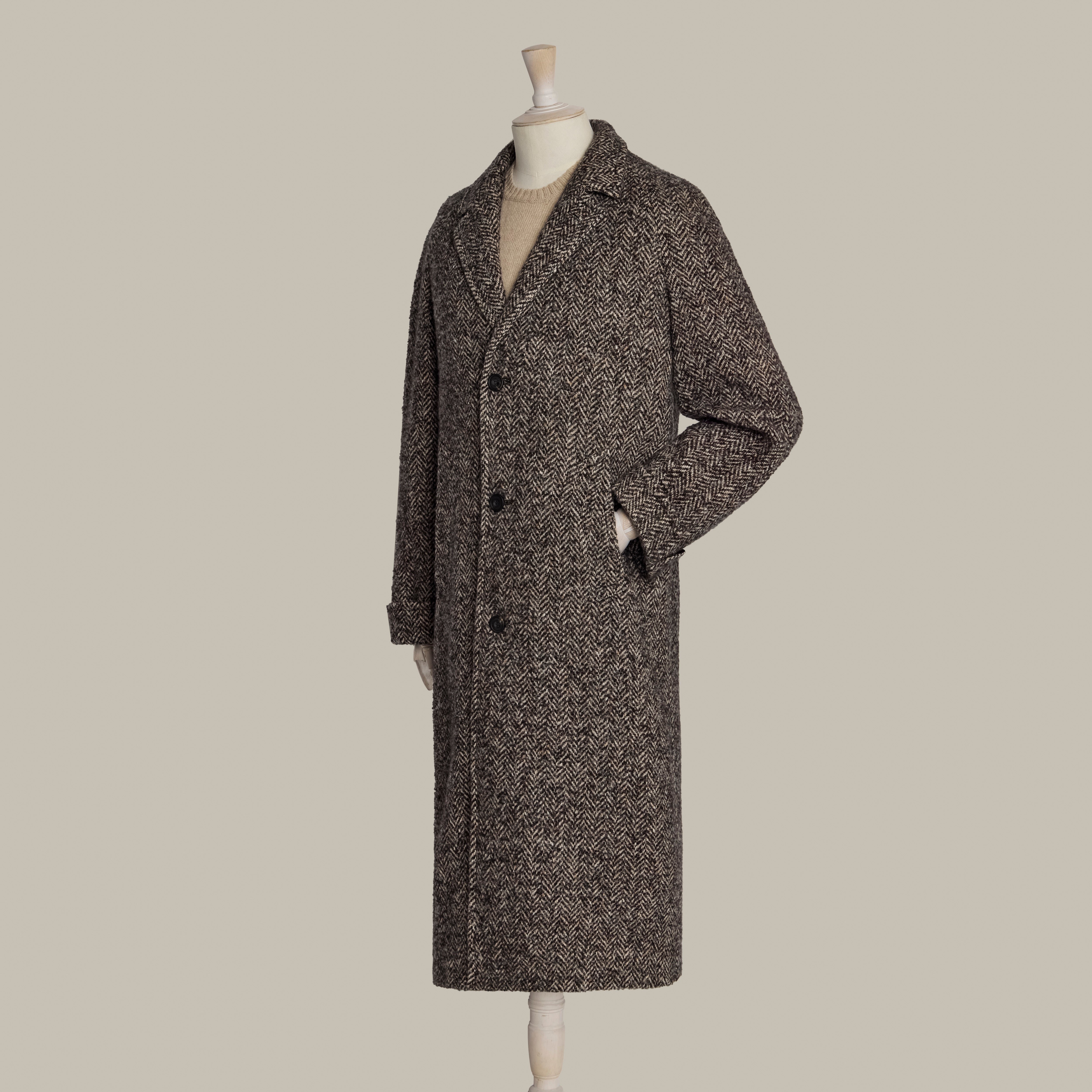 Herringbone Wool and Cashmere Overcoat in Brown