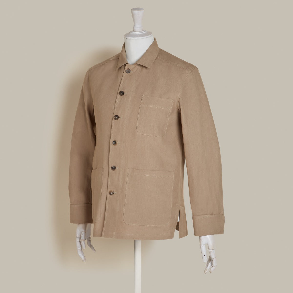Designed by Graydon Carter in New York ; exquisitely made by hand in Europe. The popular work jacket gets an update in 100 percent linen, which comes in two colours, light tan and navy, and is strong, absorbent, and quick drying. Not only does the fabric fade and soften beautifully over time, it's hypoallergenic and highly sustainable. Aesthetes will delight in the discreet stitching, genuine buffalo-horn buttons, custom AIR MAIL tape , and a distinctive, woven interior-pocket label.