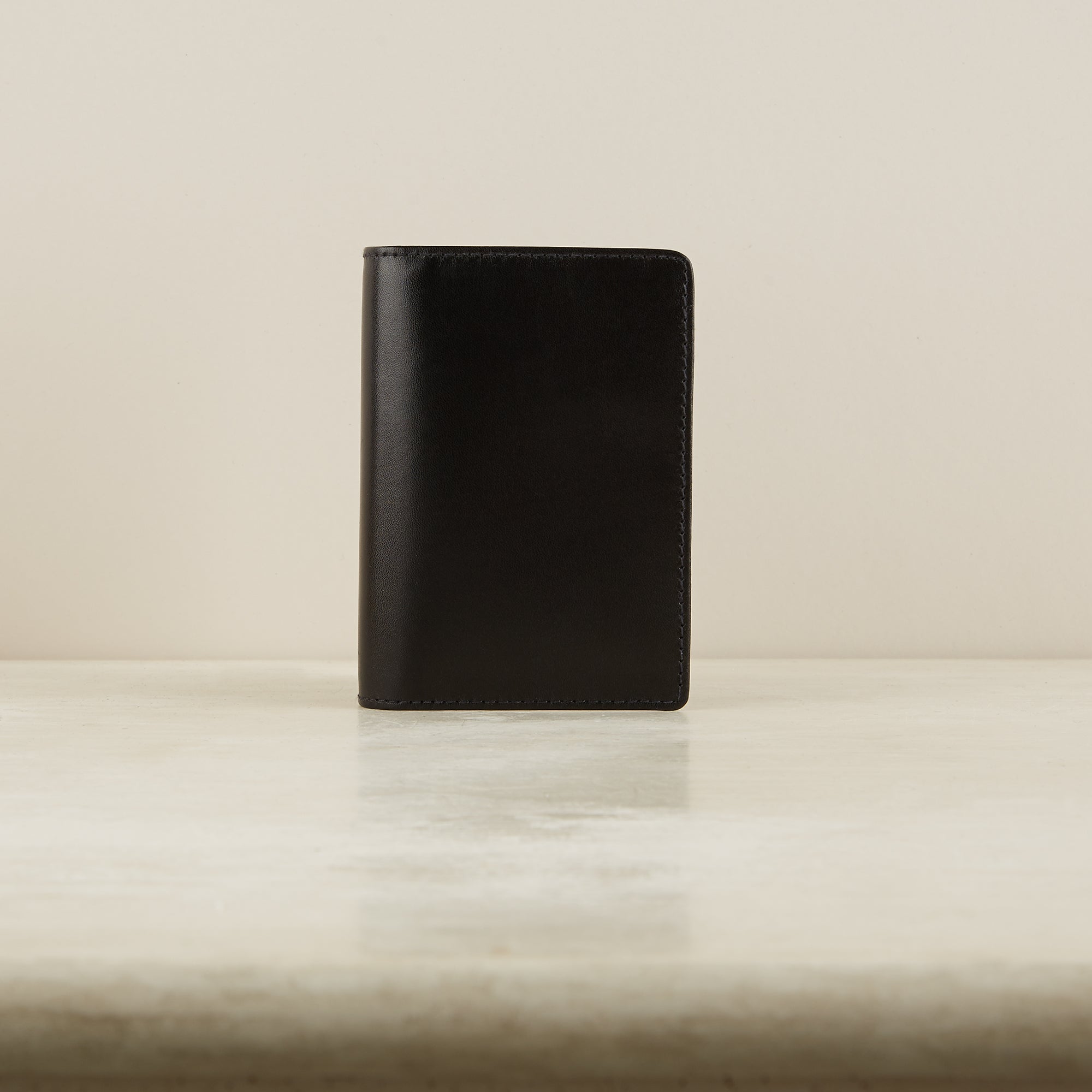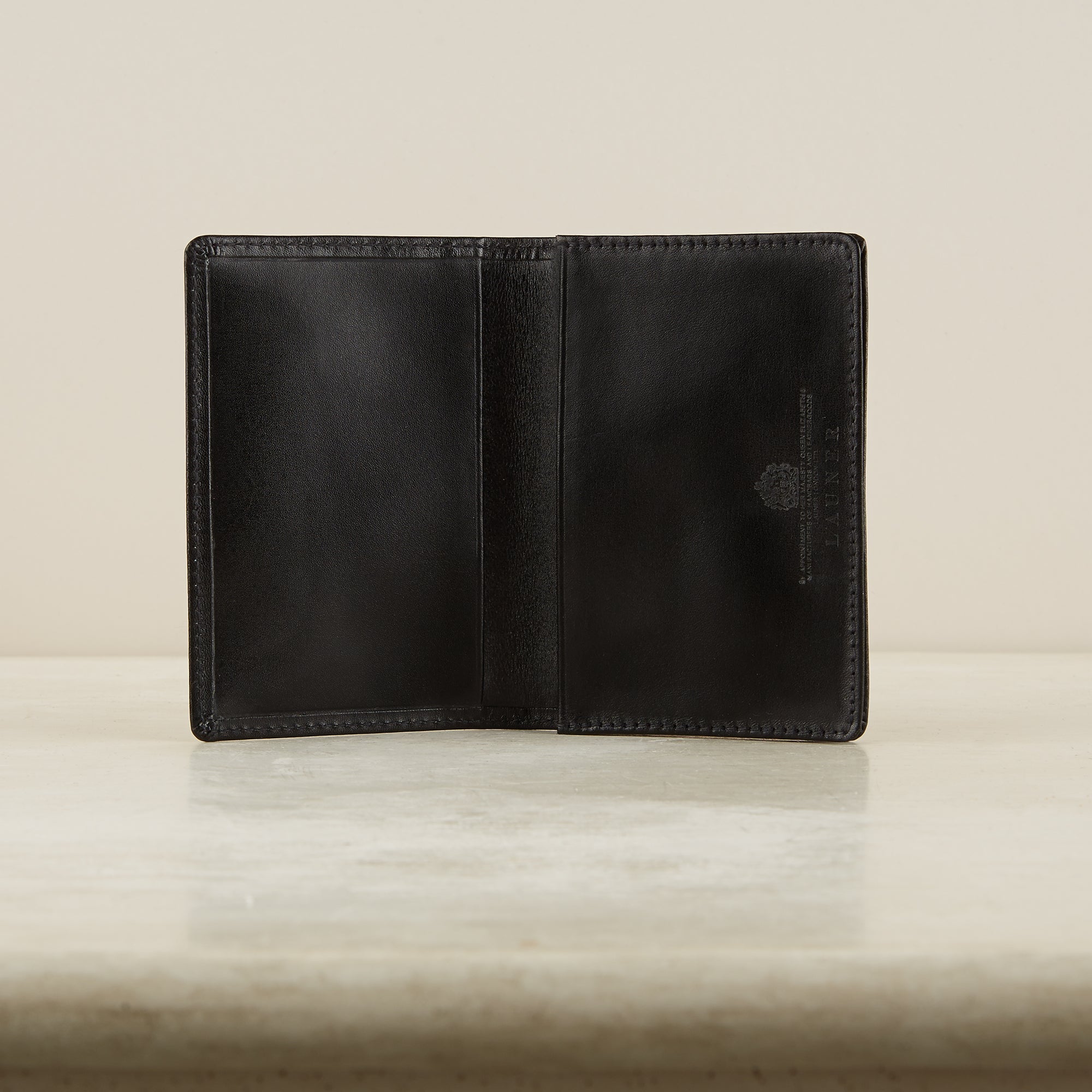 Crafted calf leather classic business card holder. Designed to fold flat in the pocket. The gussetted business card holder has an extra flat pocket opposite.