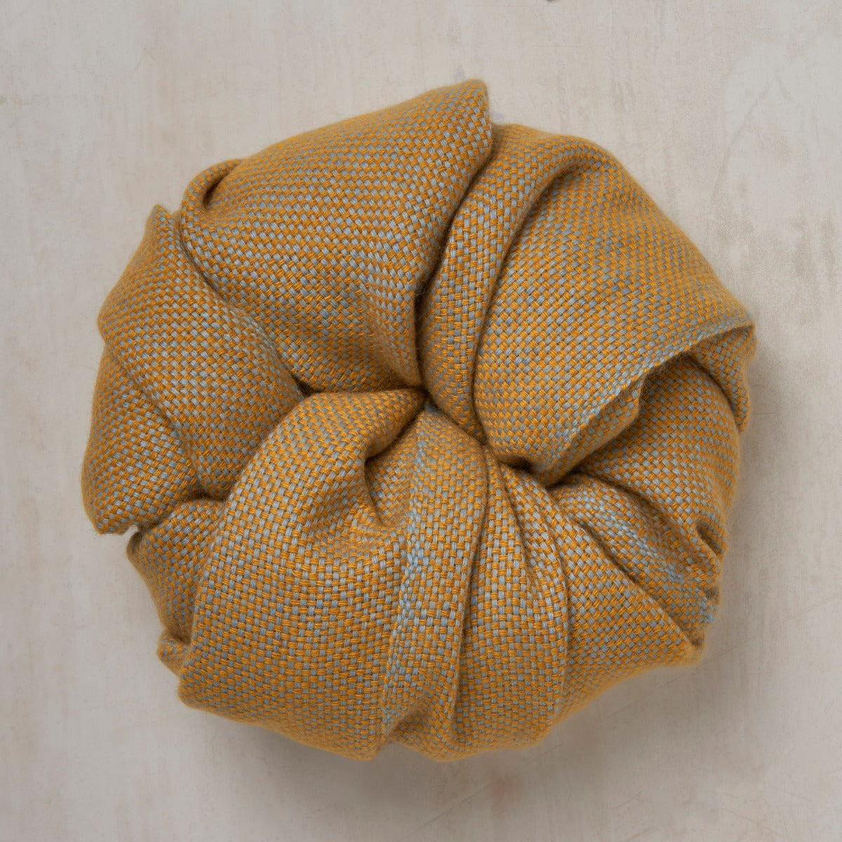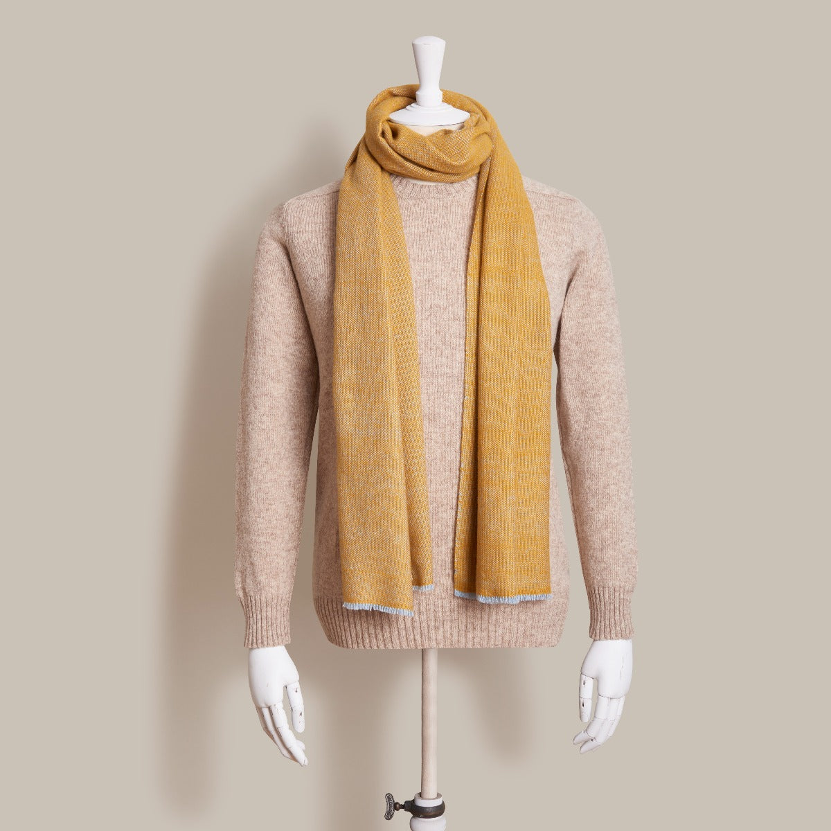 Cashmere Birdseye Weave Scarf In Gold And Sky