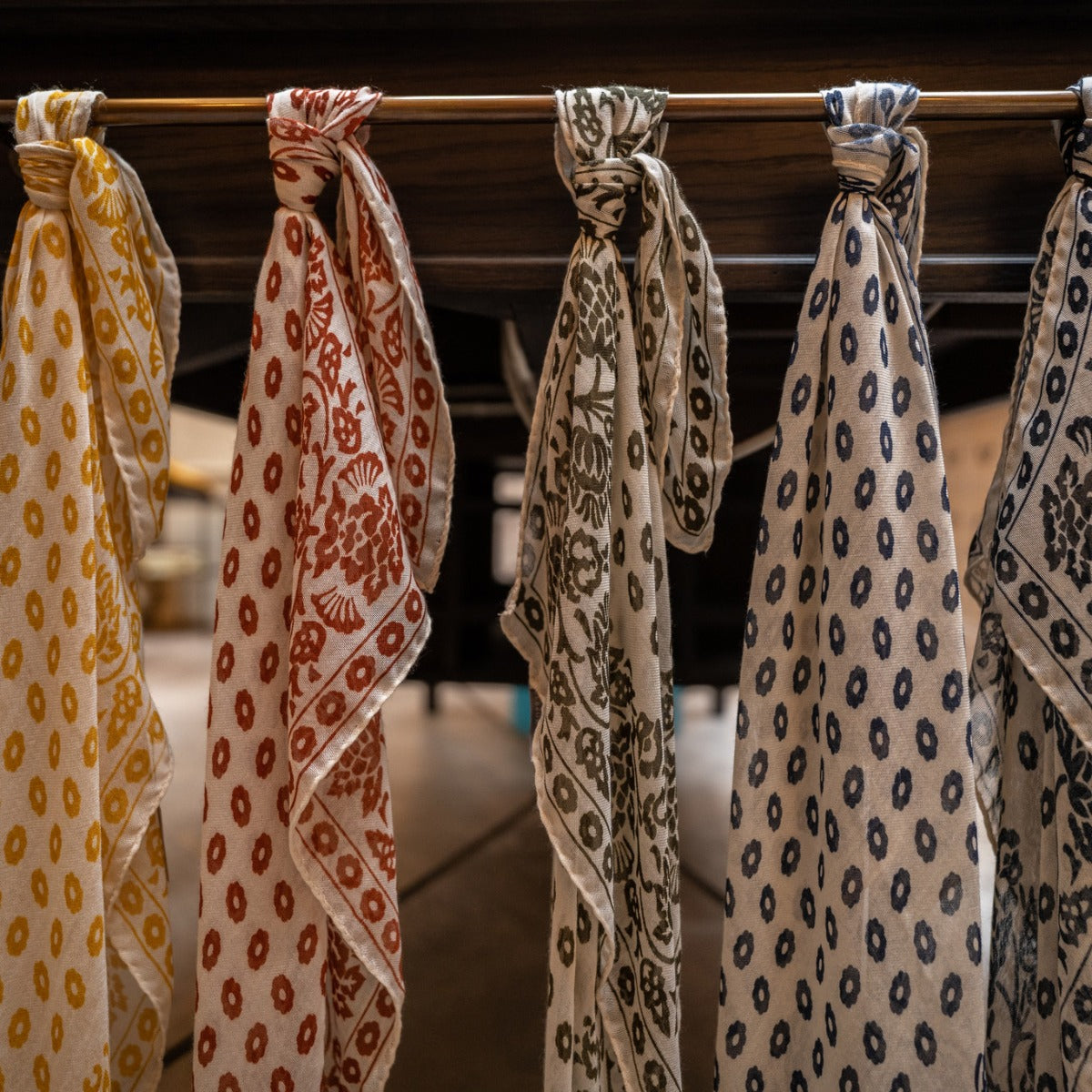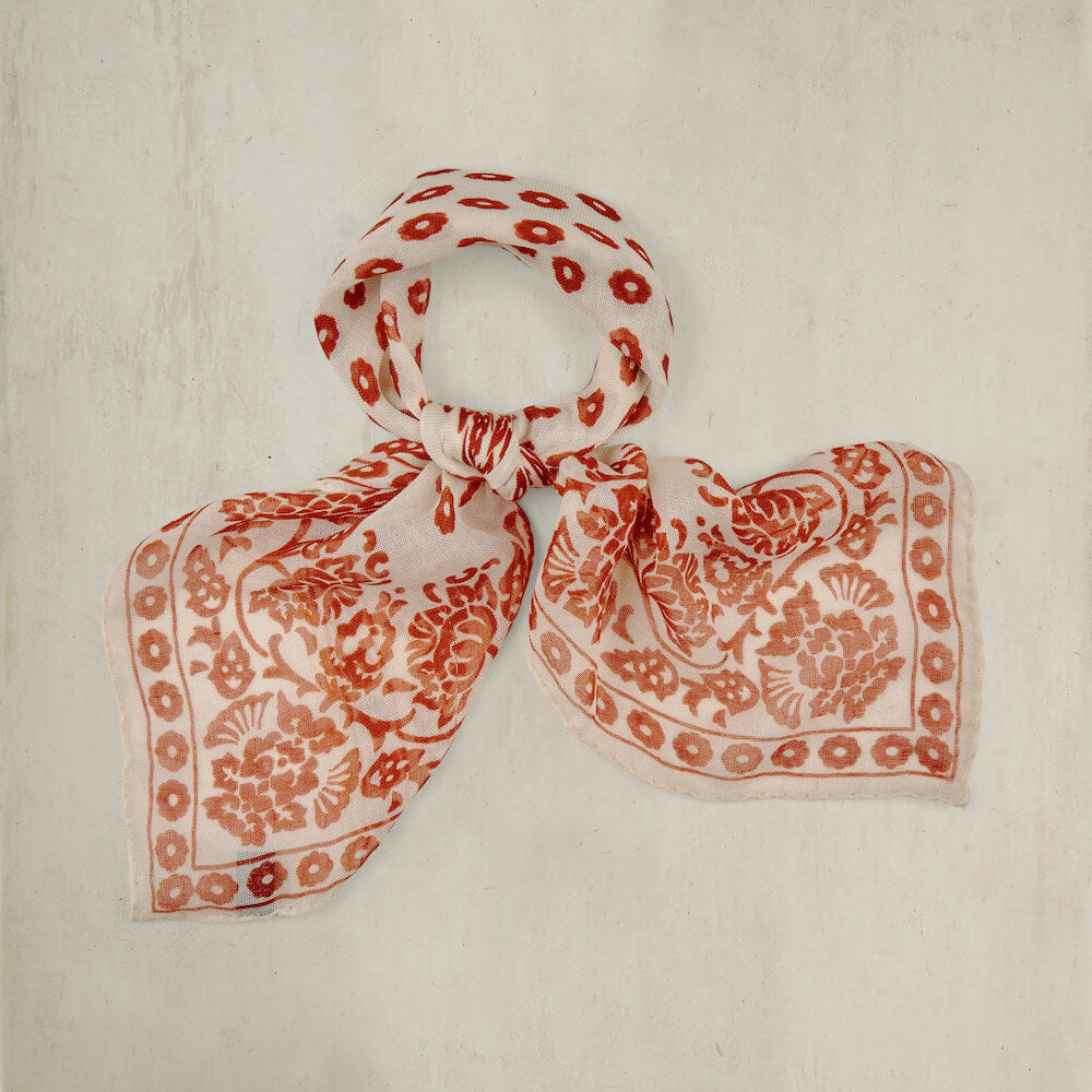 Cashmere And Silk Geometric Provence Neckerchief In Rust