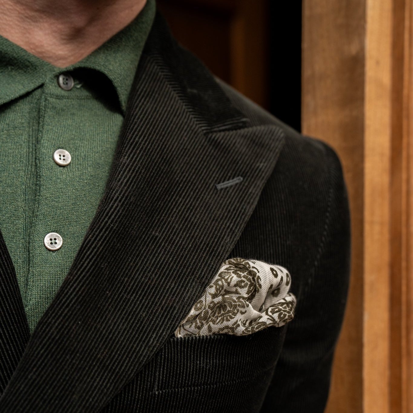 Woven out of cashmere and silk this geometric print pocket square is the perfect companion to your Autumnal suit or sports jacket.