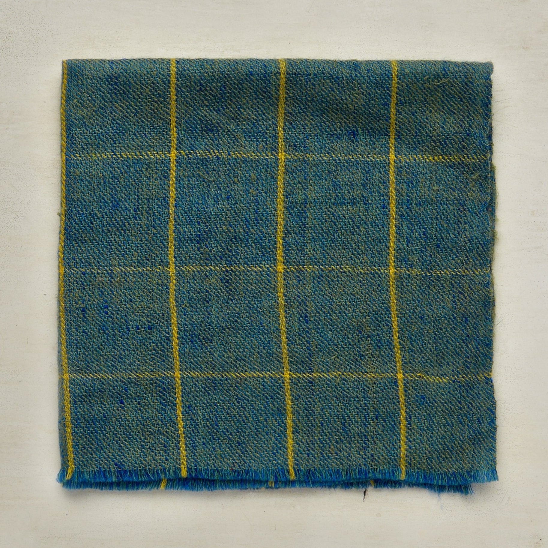This 100% cashmere pocket square made by a small family business in India. It has been hand made and hand dyed using traditional techniques. The soft textured accessory features a check design and pin fringe edges. Available in a range of colour combinations.