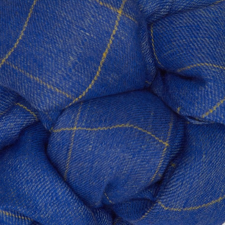 Windowpane Check Cashmere Scarf In Blue And Yellow
