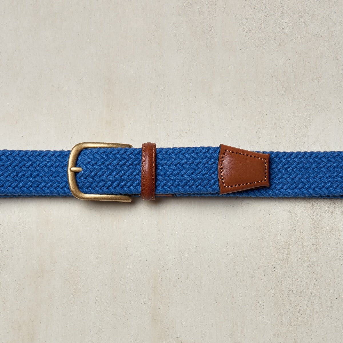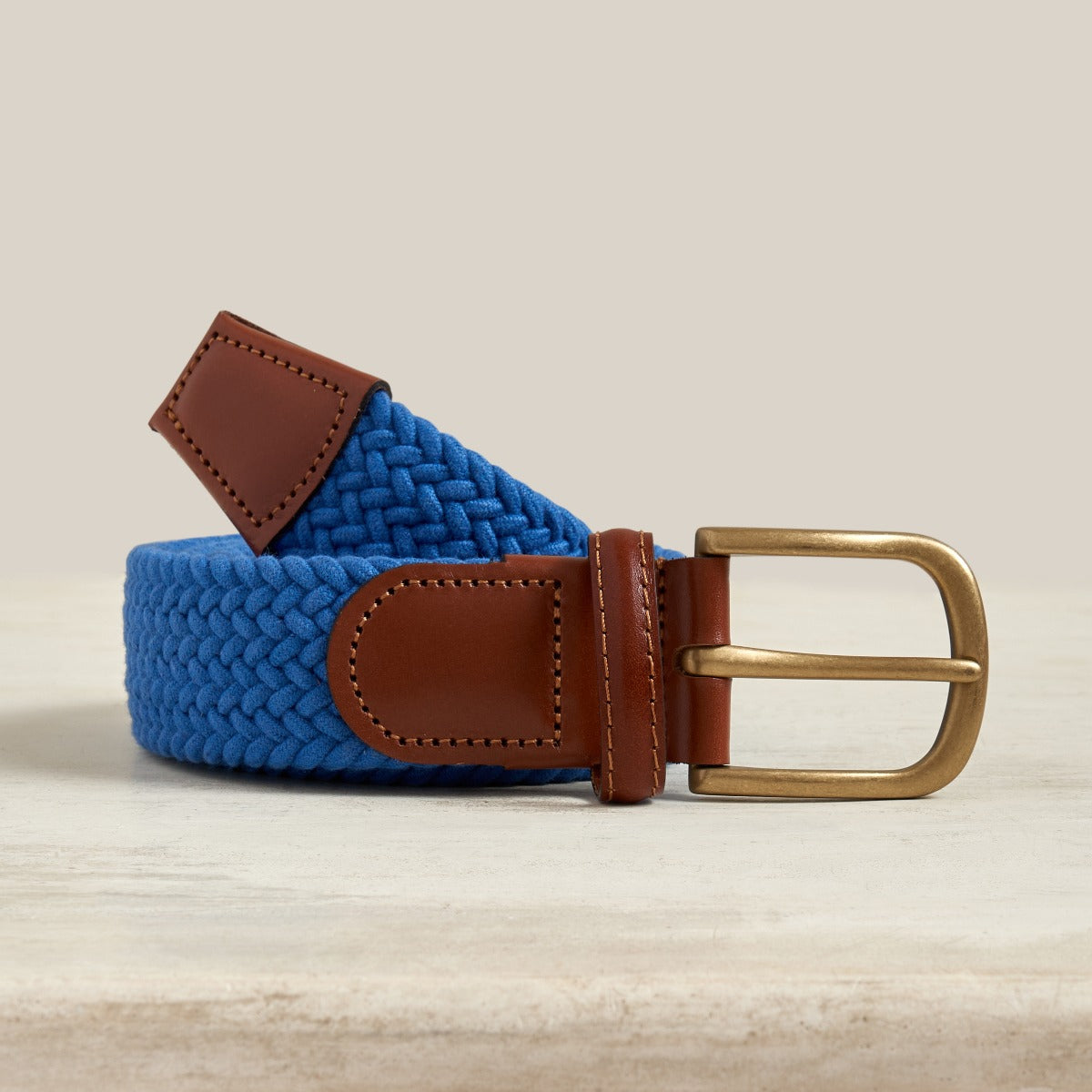 Whether worn with denim or casual tailored trousers, this versatile cotton woven belt is a great way to add a touch of colour to an outfit, whilst still being easy to coordinate with one’s shoes. Featuring brown leather trim and an antiqued brass buckle, the stretchy nature of this belt means it will work with you even when carrying a few extra pounds of holiday weight!