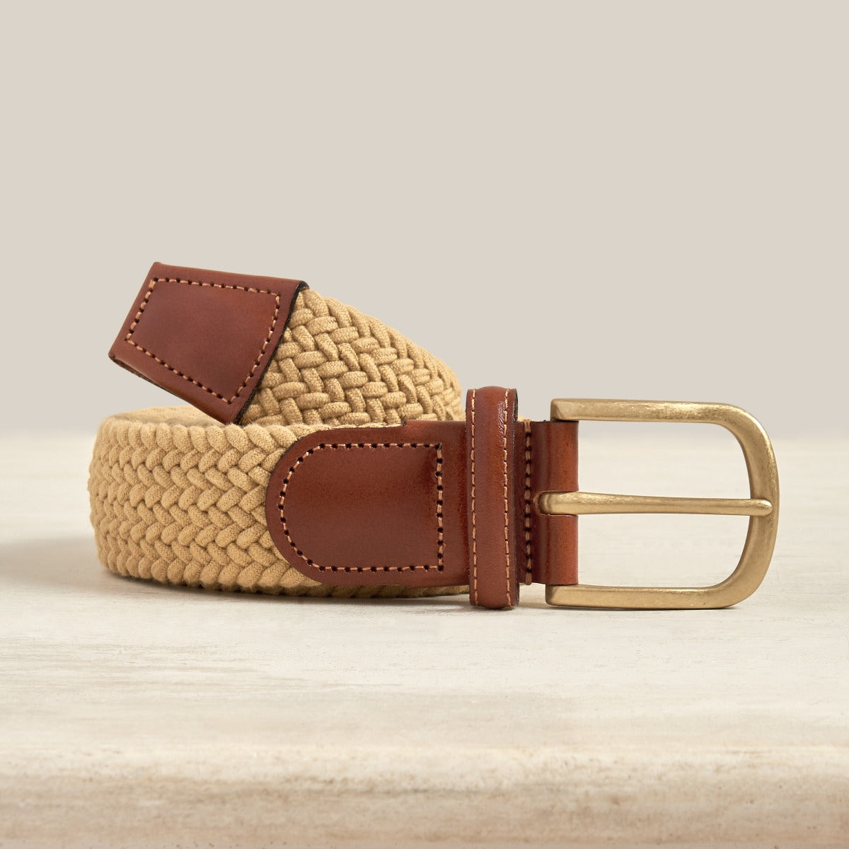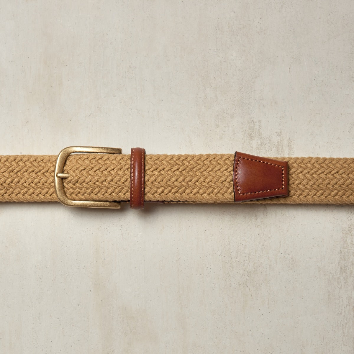Whether worn with denim or casual tailored trousers, this versatile cotton woven belt is a great way to add a touch of colour to an outfit, whilst still being easy to coordinate with one’s shoes. Featuring brown leather trim and an antiqued brass buckle, the stretchy nature of this belt means it will work with you even when carrying a few extra pounds of holiday weight!