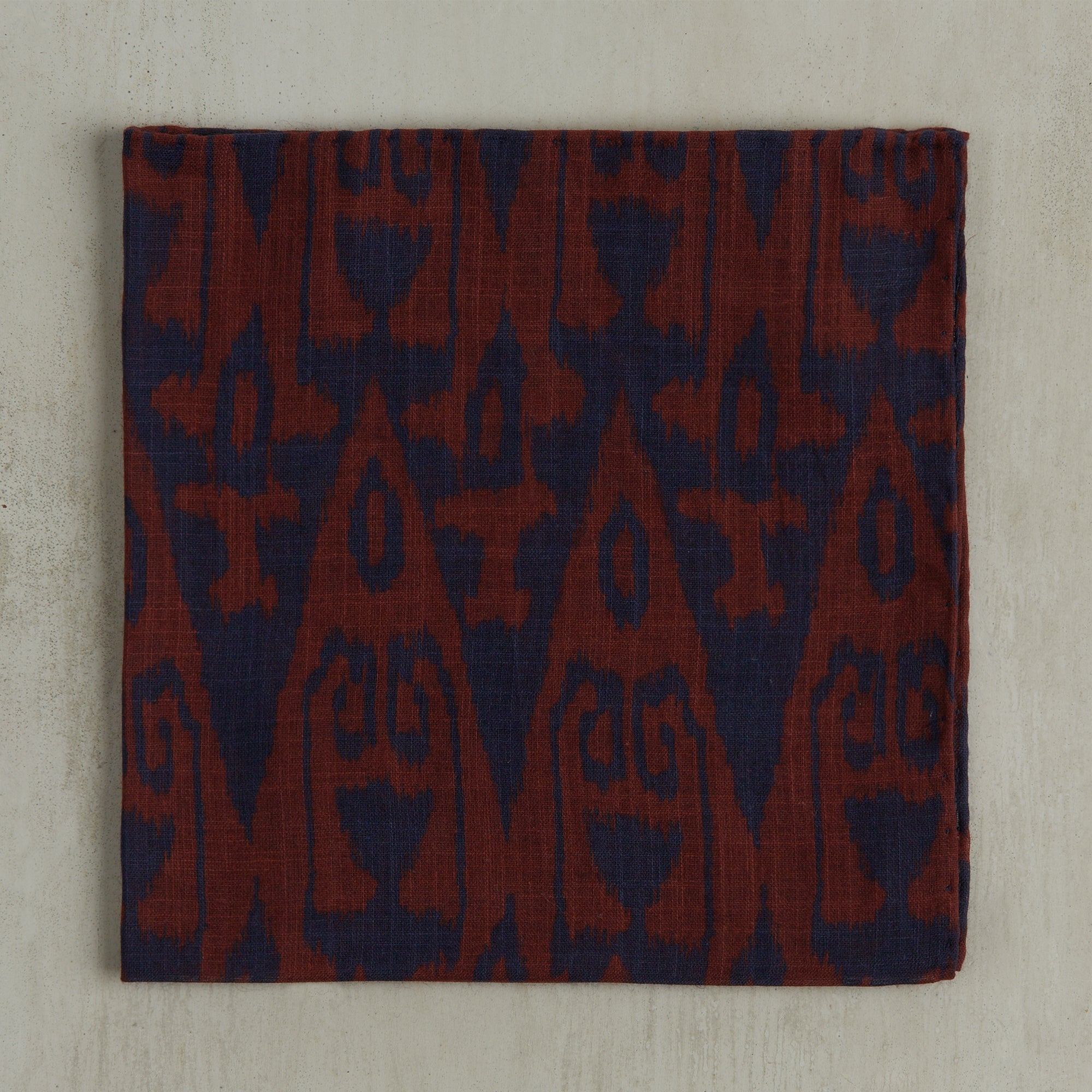 This fine cotton pocket square is in a traditional ikat print and available in several colours.