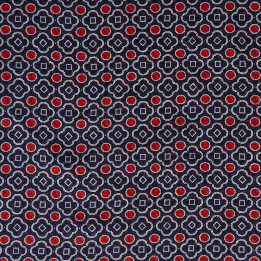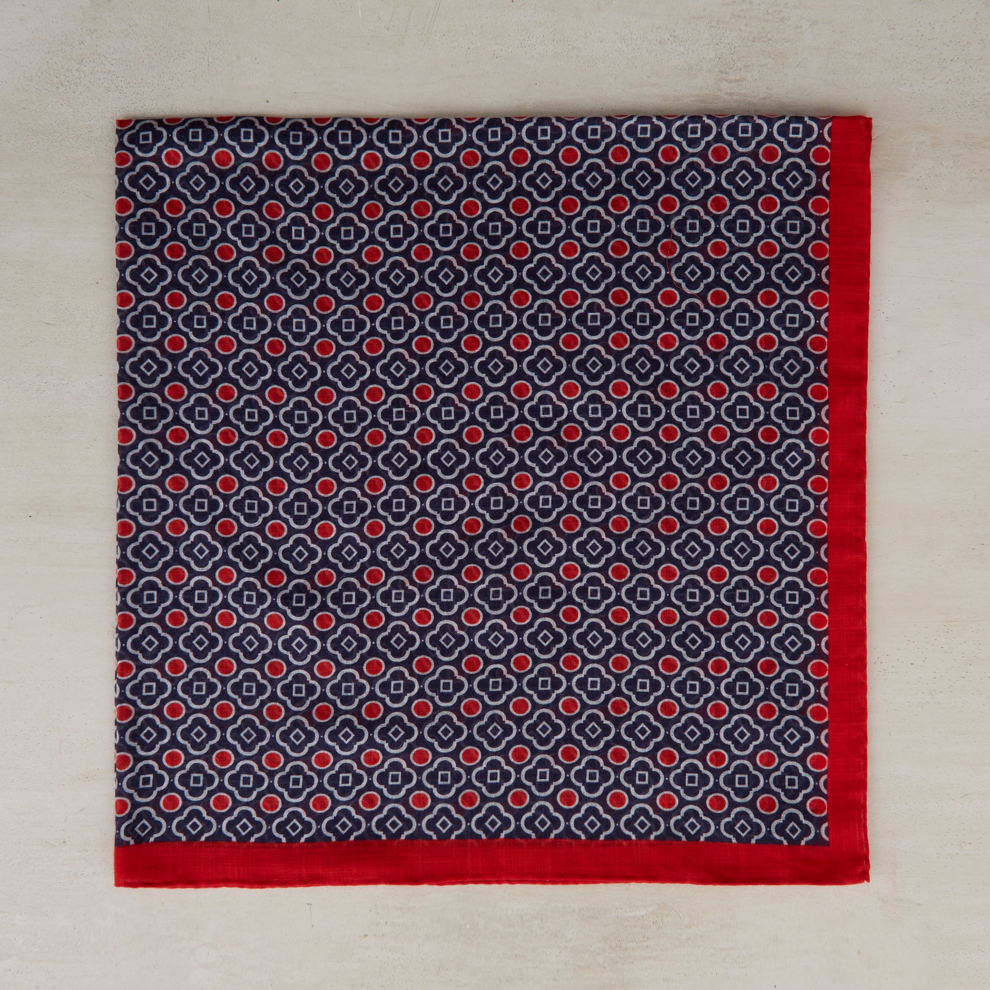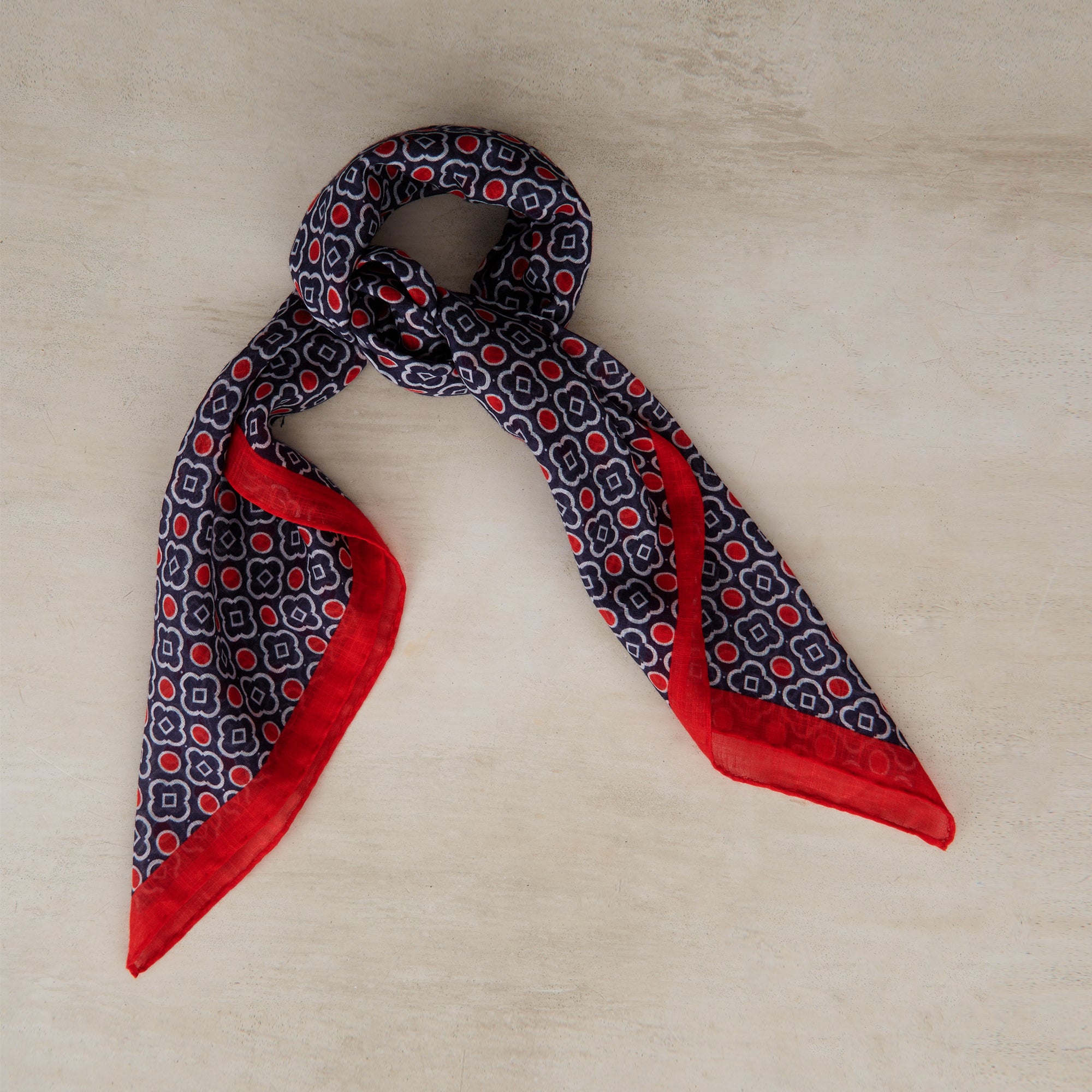 Cotton Mosaic Print Neckerchief In Navy and Red