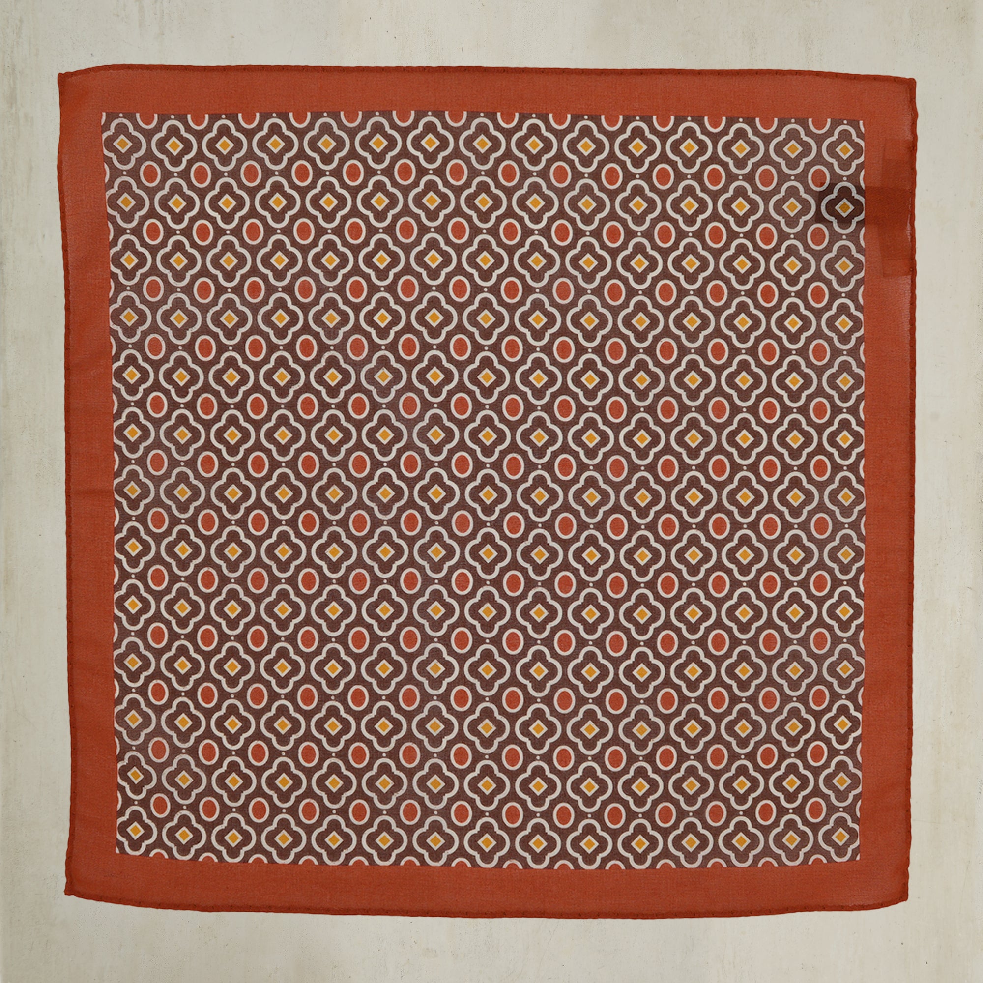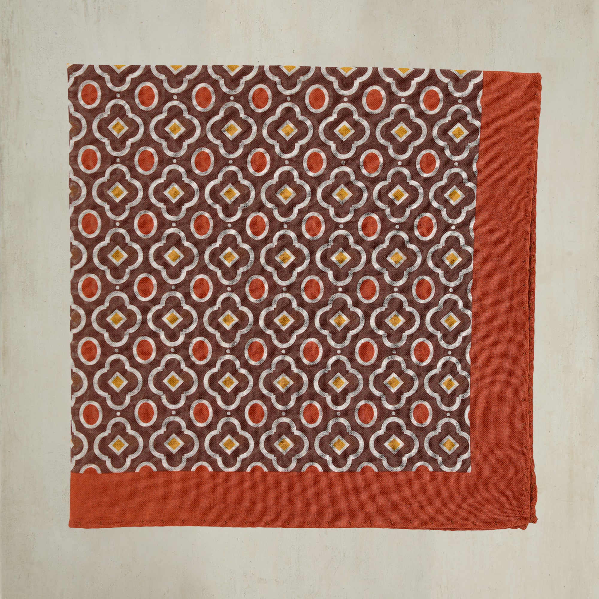 This intricately patterned cotton pocket square features a Moroccan-inspired mosaic design, perfect for teaming with with soft tailoring to add a subtle pop of colour and detail. Beautiful when worn with the trim turned out of the pocket.