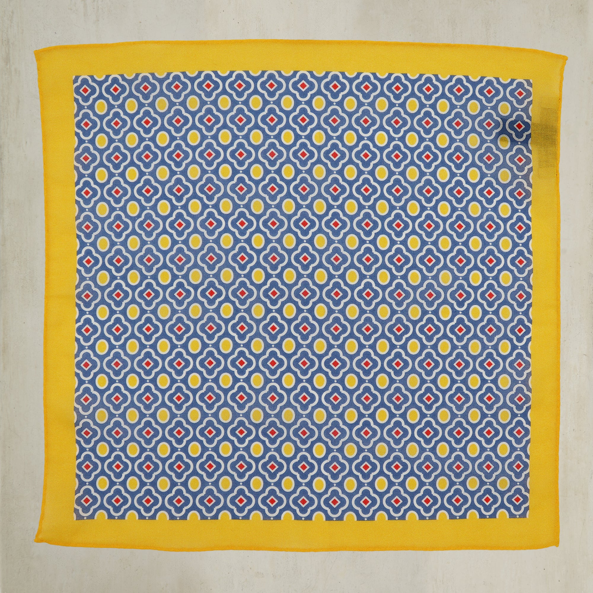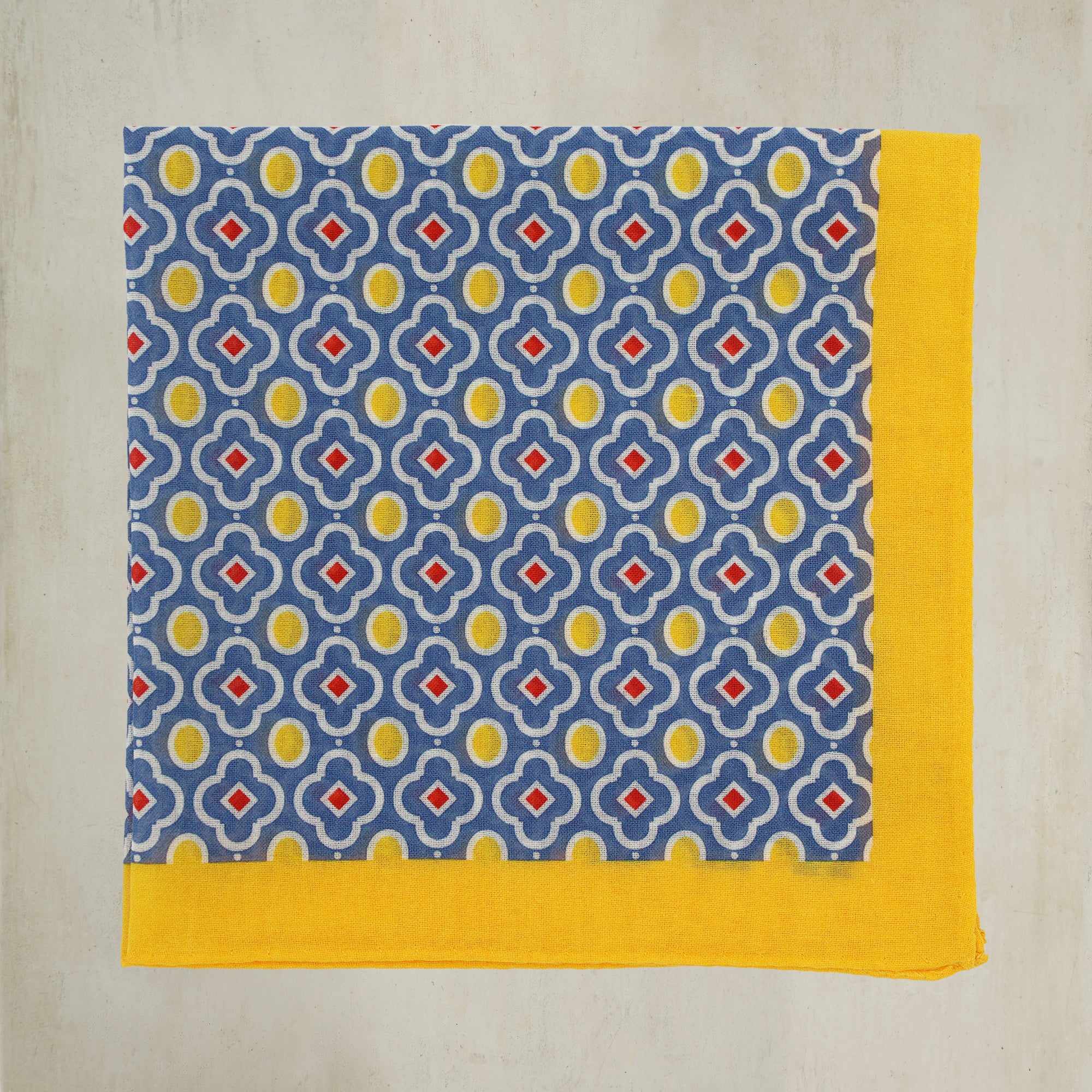 This intricately patterned cotton pocket square features a Moroccan-inspired mosaic design, perfect for teaming with with soft tailoring to add a subtle pop of colour and detail. Beautiful when worn with the trim turned out of the pocket.