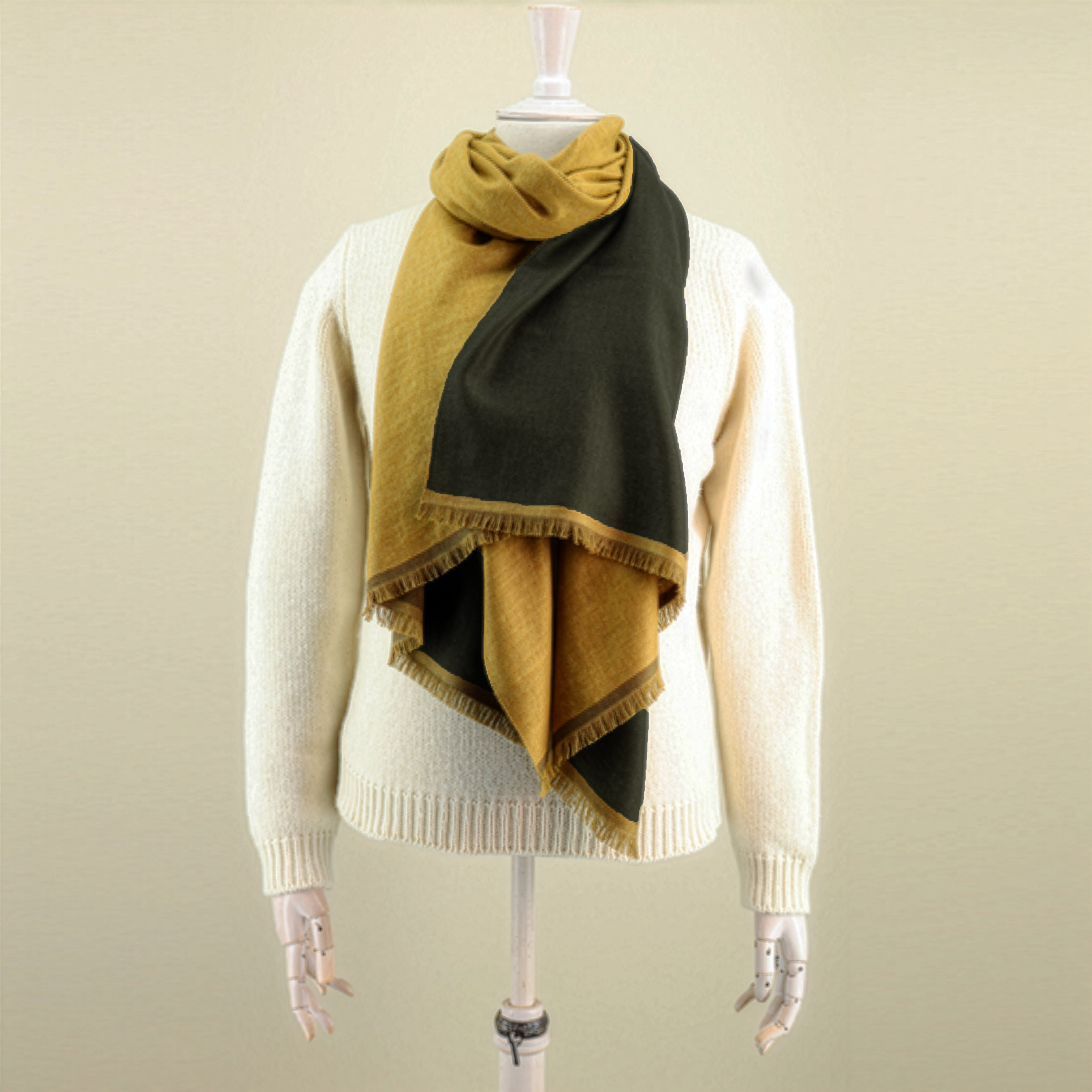 Double Sided Cashmere Scarf In Khaki And Yellow