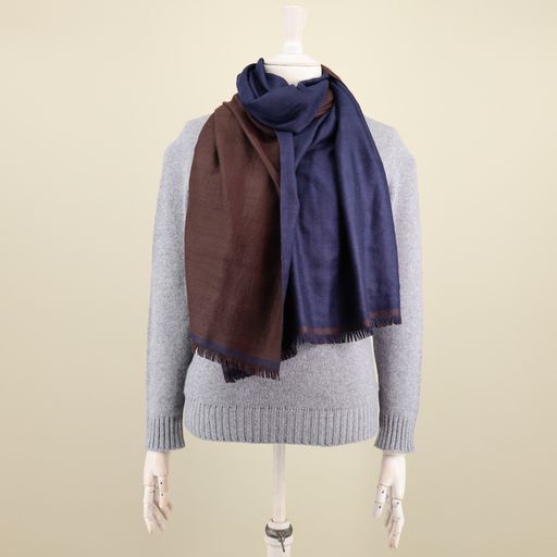 Double Sided Cashmere Scarf In Chocolate And Navy