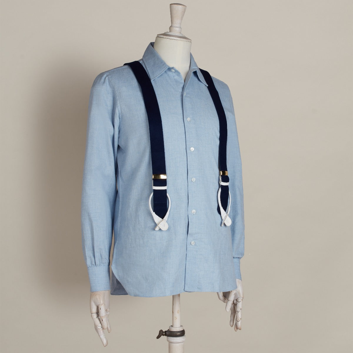 These traditional felt braces are handmade by the oldest manufacturer of braces in the world. They are sturdy, colourful and practical. The braces have a traditional button fitting with leather ends. The length of the straps are altered by narrow brass adjusters.