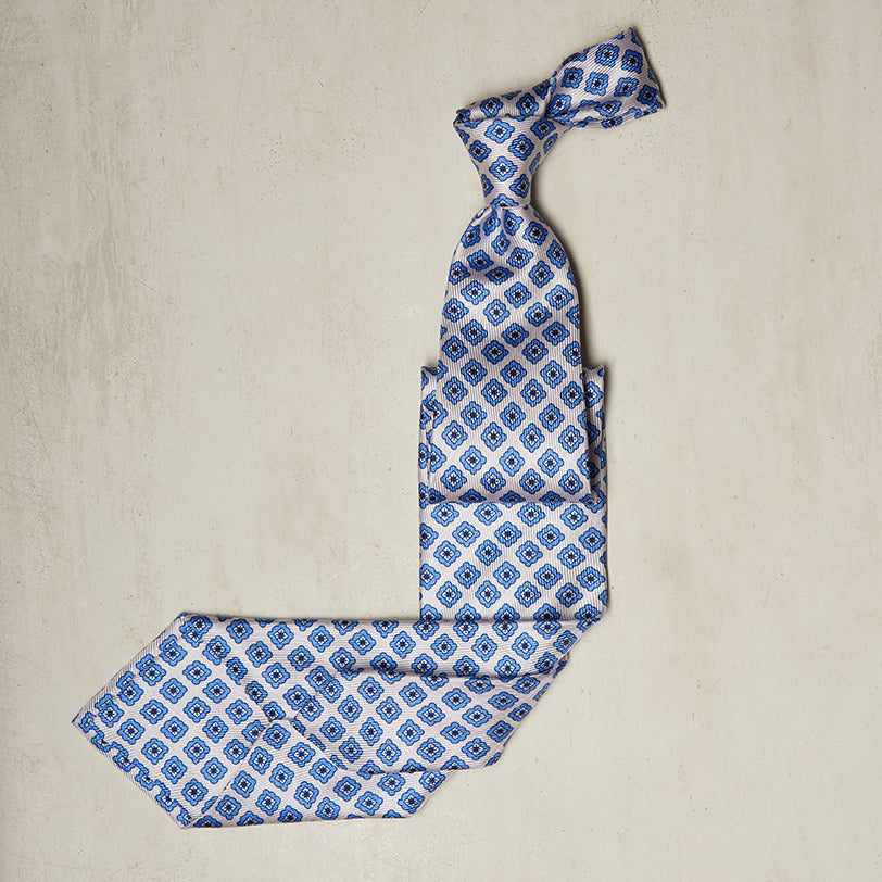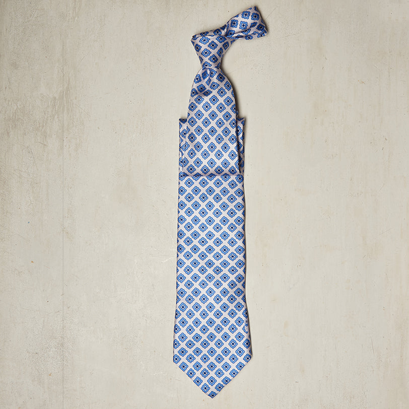 For an elegant addition to your accessories wardrobe, this geometric printed tie will add a polished finishing touch to your formal outfit, and looks great against a pale blue shirt.
