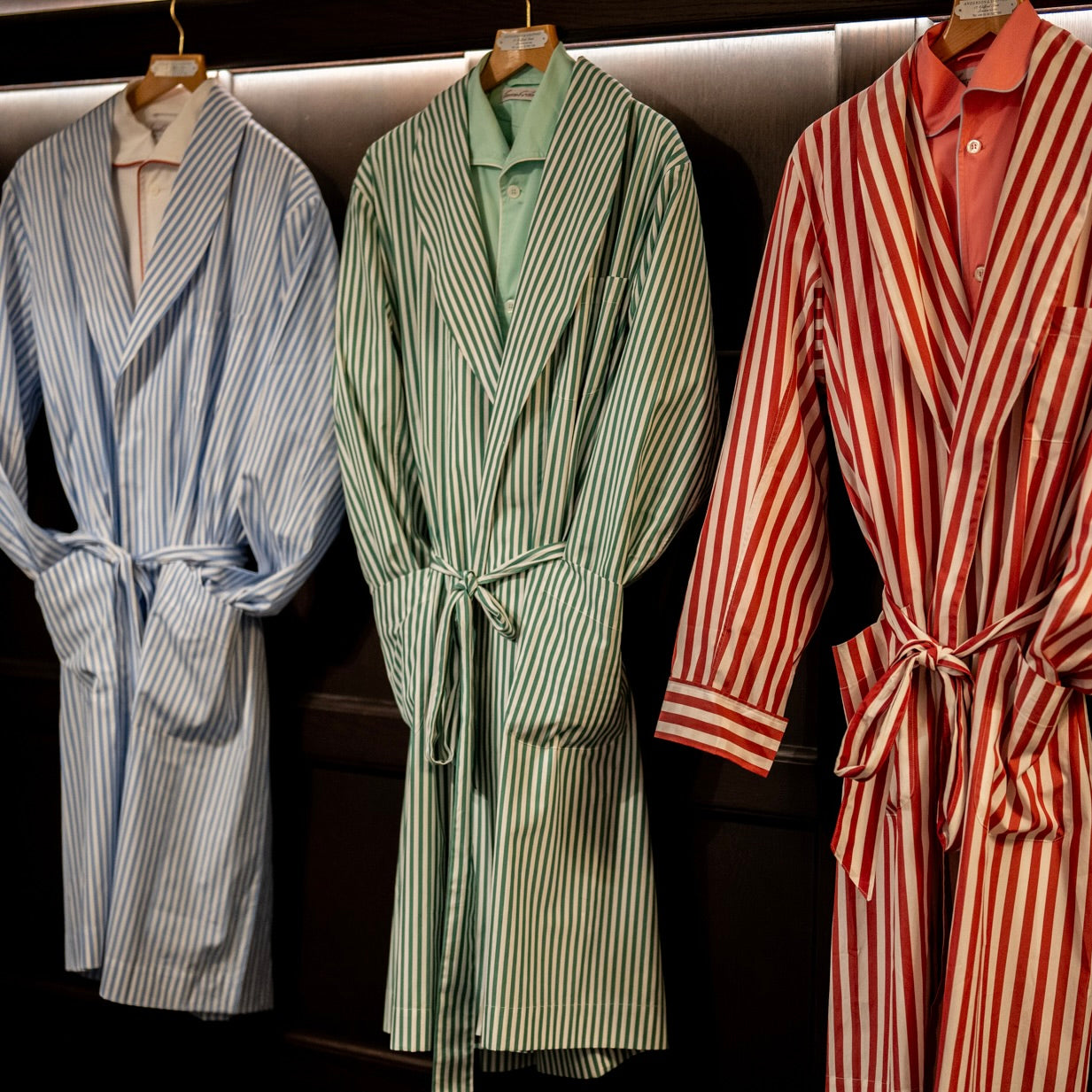 George Cortina For Anderson & Sheppard Striped Robe in Green