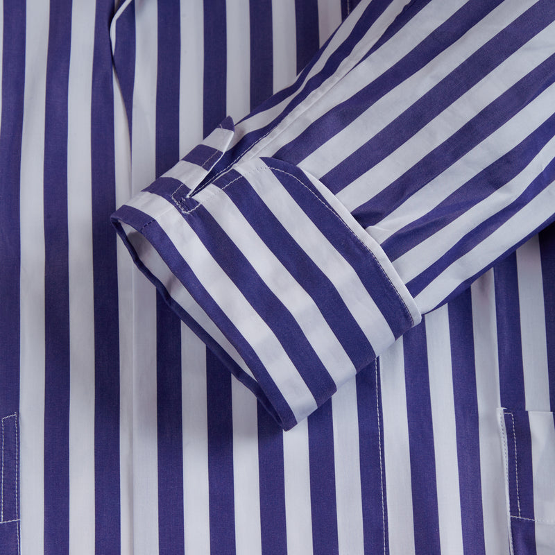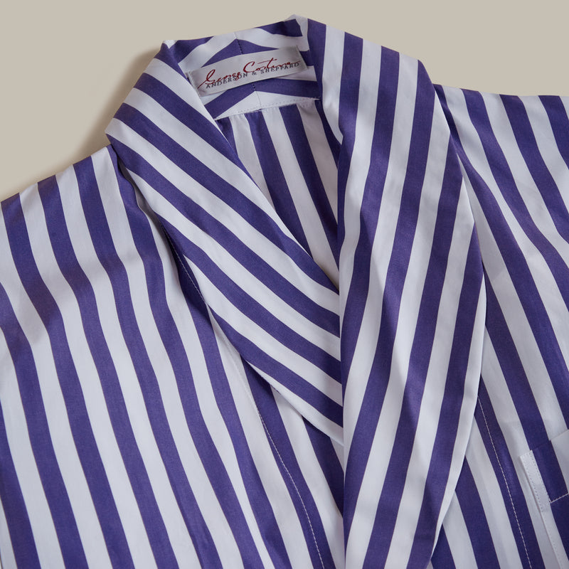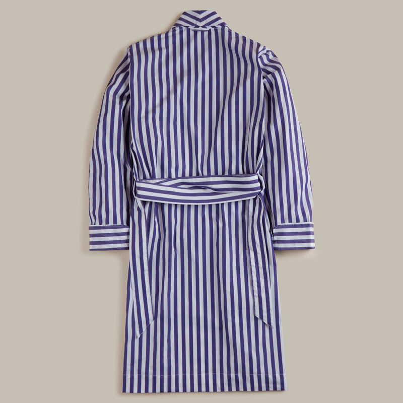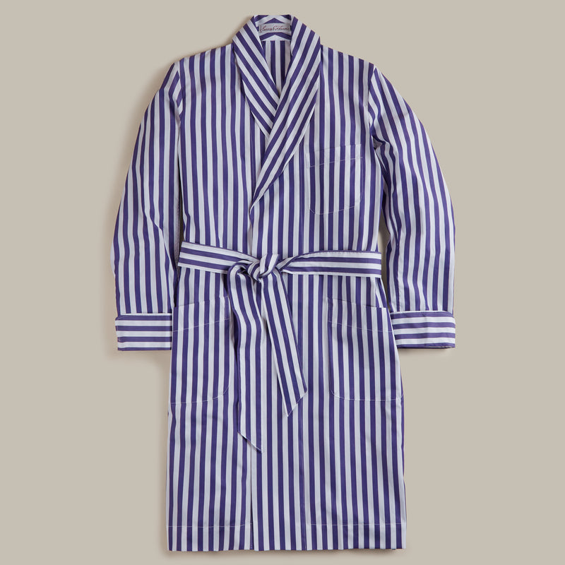George Cortina For Anderson & Sheppard Wide Stripe Robe in Blue