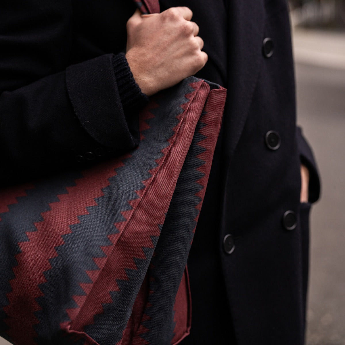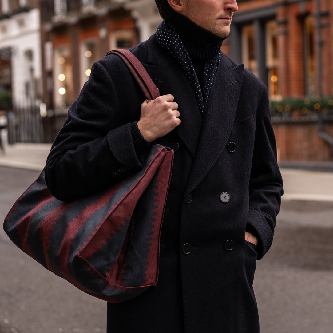 Introducing The Gallery Bag: the first collaboration fusing Giles Deacon's effortless flair with Anderson & Sheppard's desire to bring you the perfect tote. Generously sized and perfectly proportioned this fabulous bag features an internal zipped pocket and roomy handles- deep enough to through over your shoulder. Available in three zig-zag colorways, this capacious tote will make the perfect addition to your luggage collection. ( And you never know quite what you will find at the bottom! )
