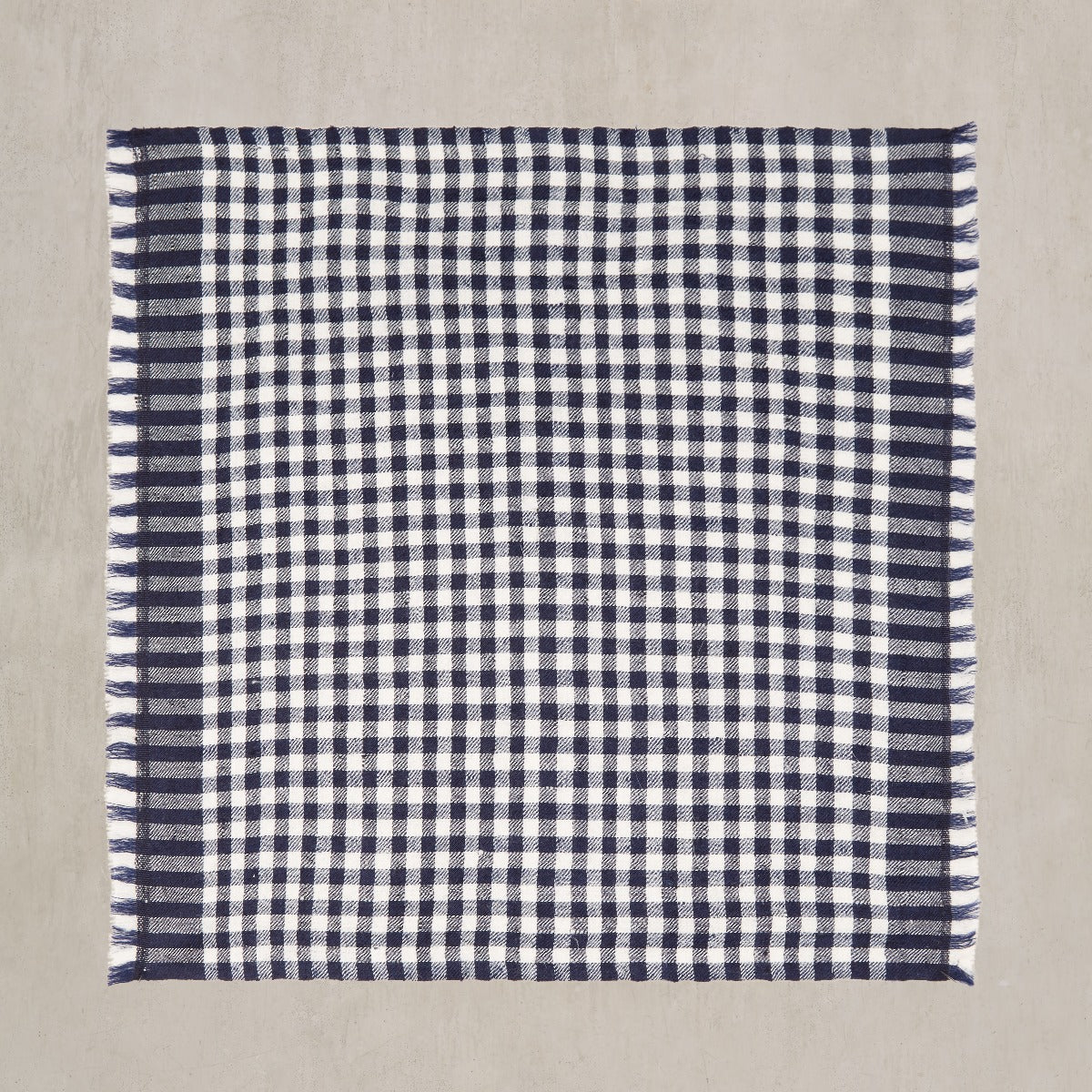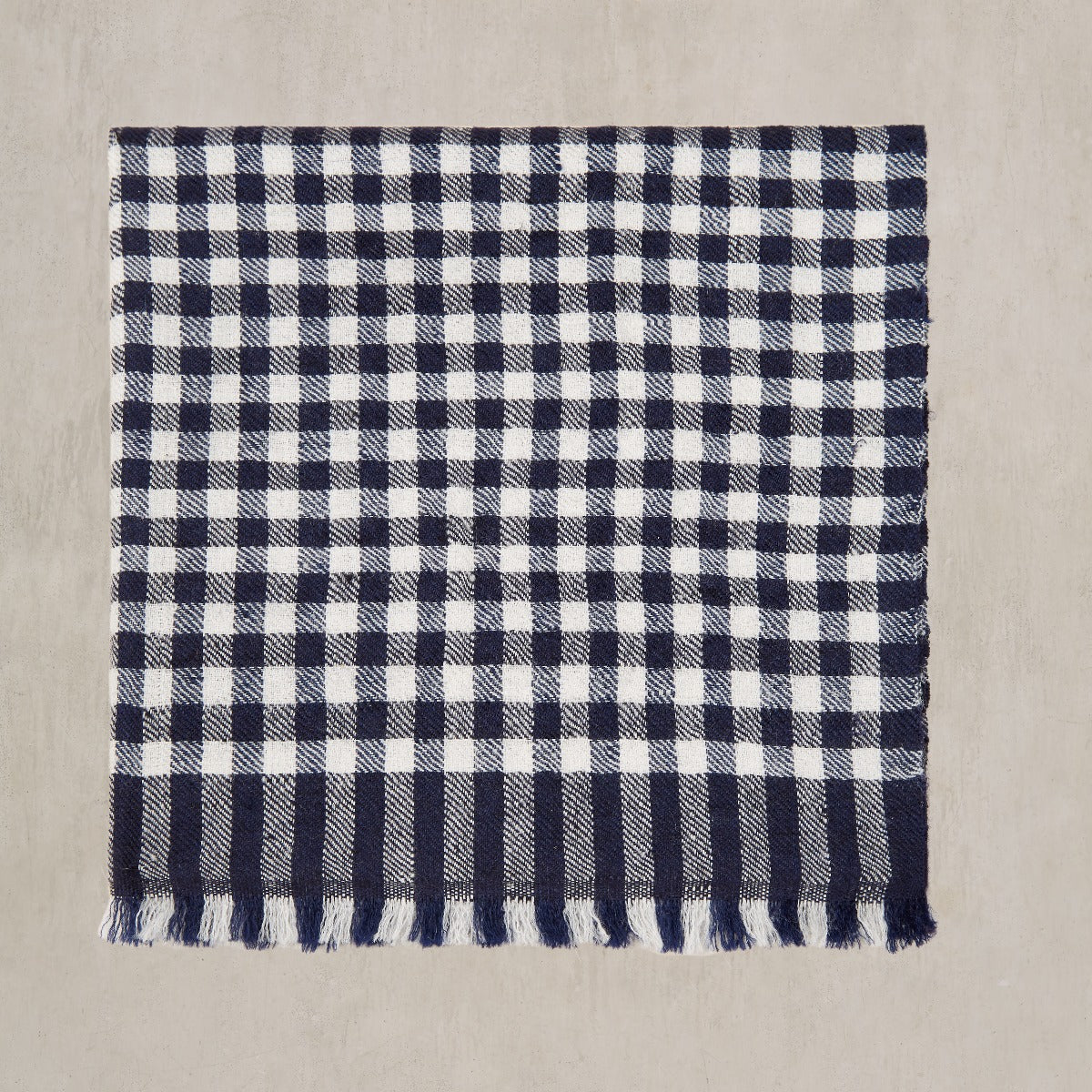 Gingham Cashmere Pocket Square In Navy And Ecru