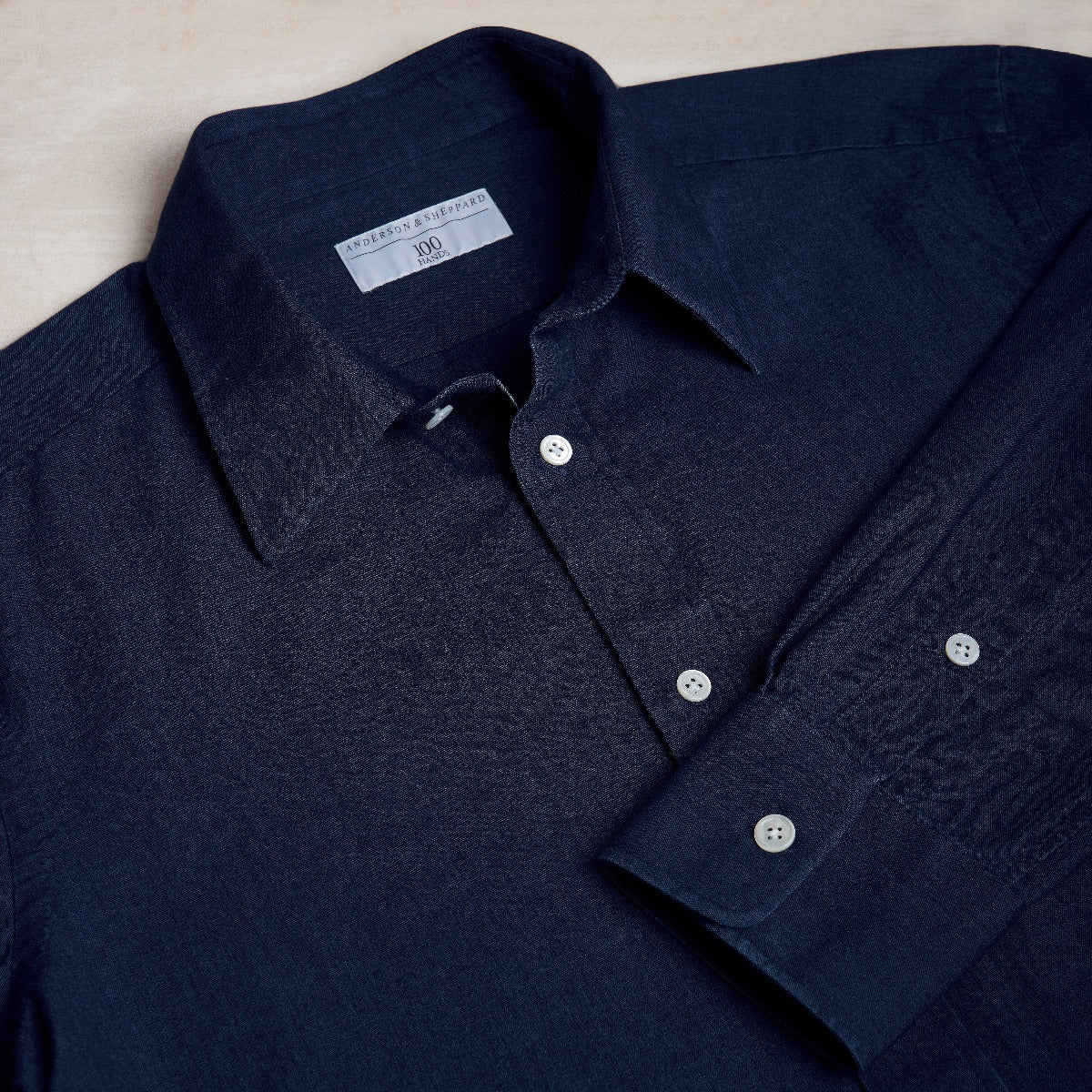 100 Hands For Anderson & Sheppard Handmade Chambray Shirt In Navy