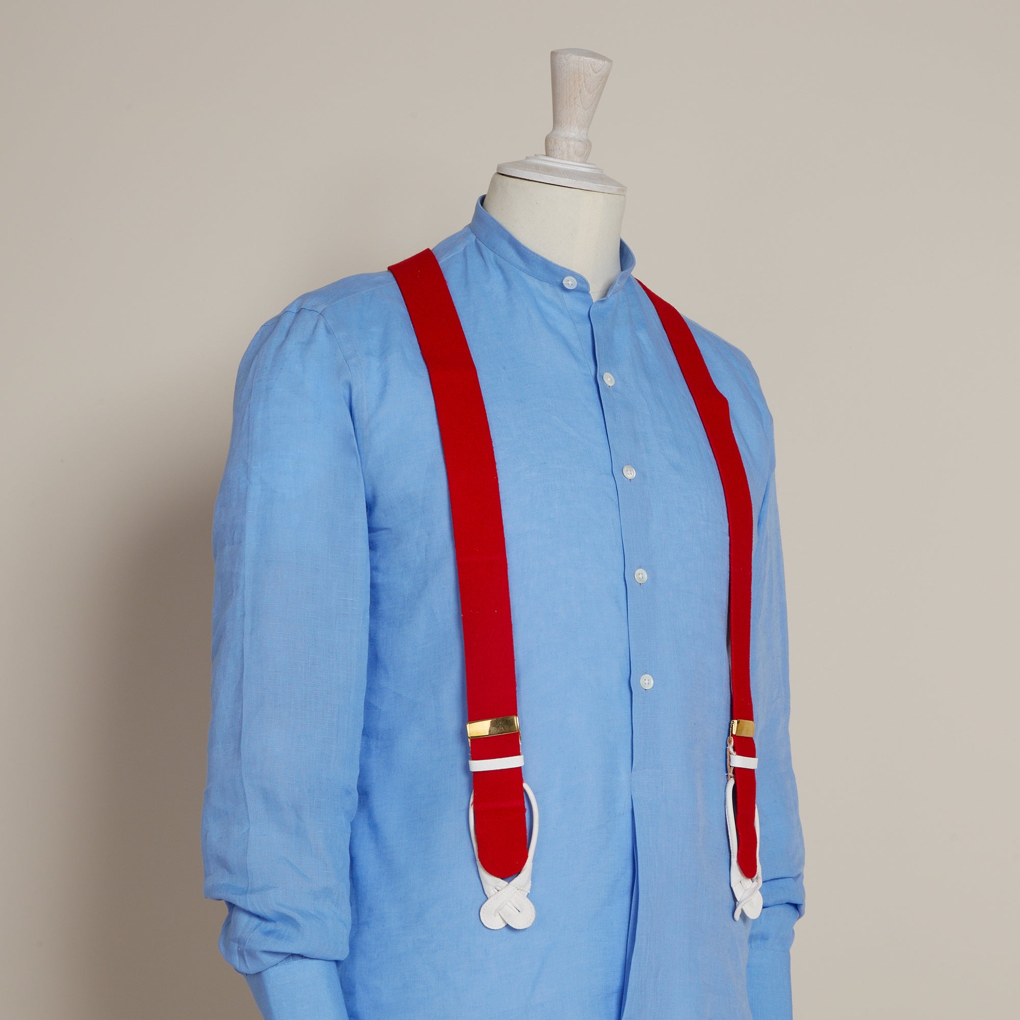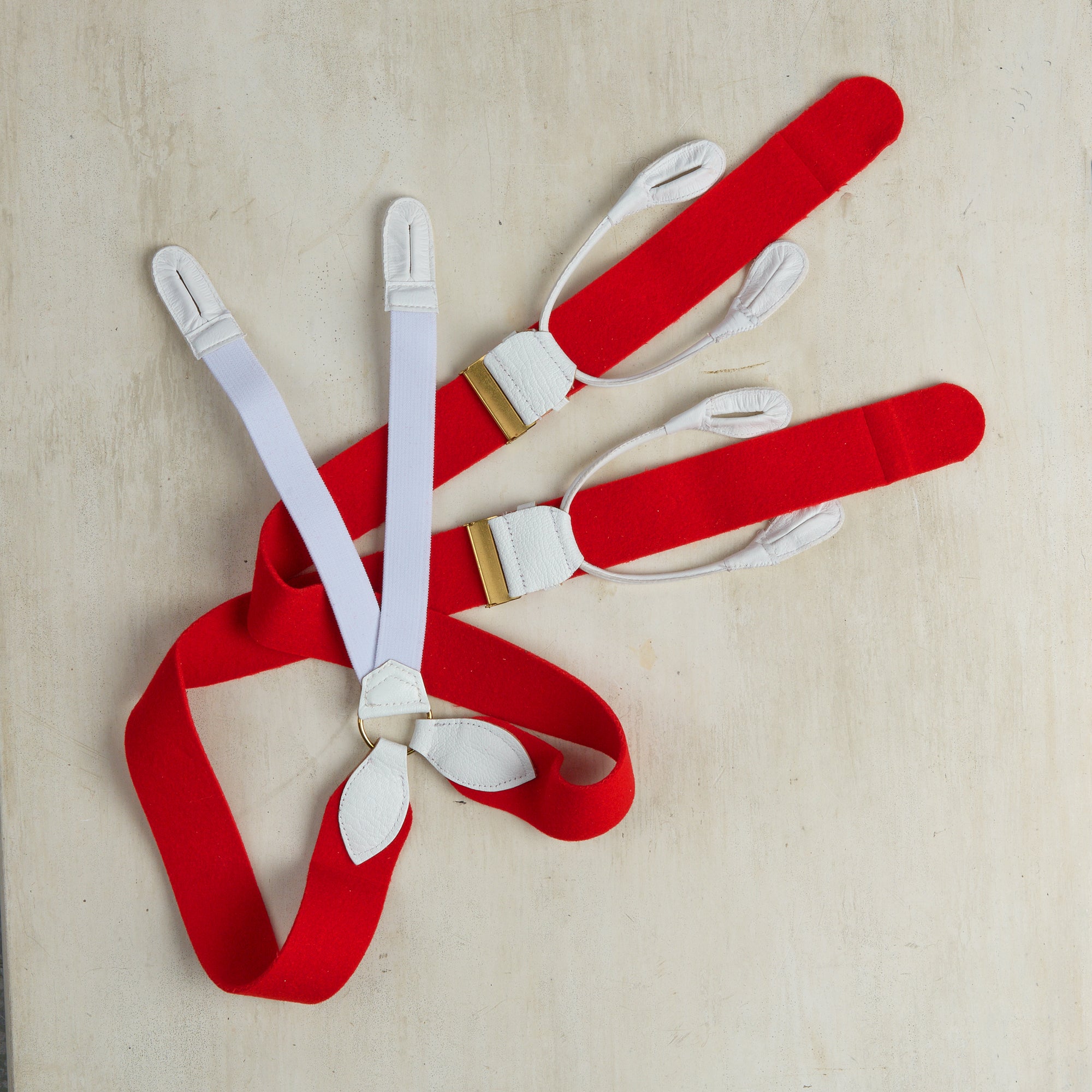 These traditional felt braces are handmade by the oldest manufacturer of braces in the world. They are sturdy, colourful and practical. The braces have a traditional button fitting with leather ends.