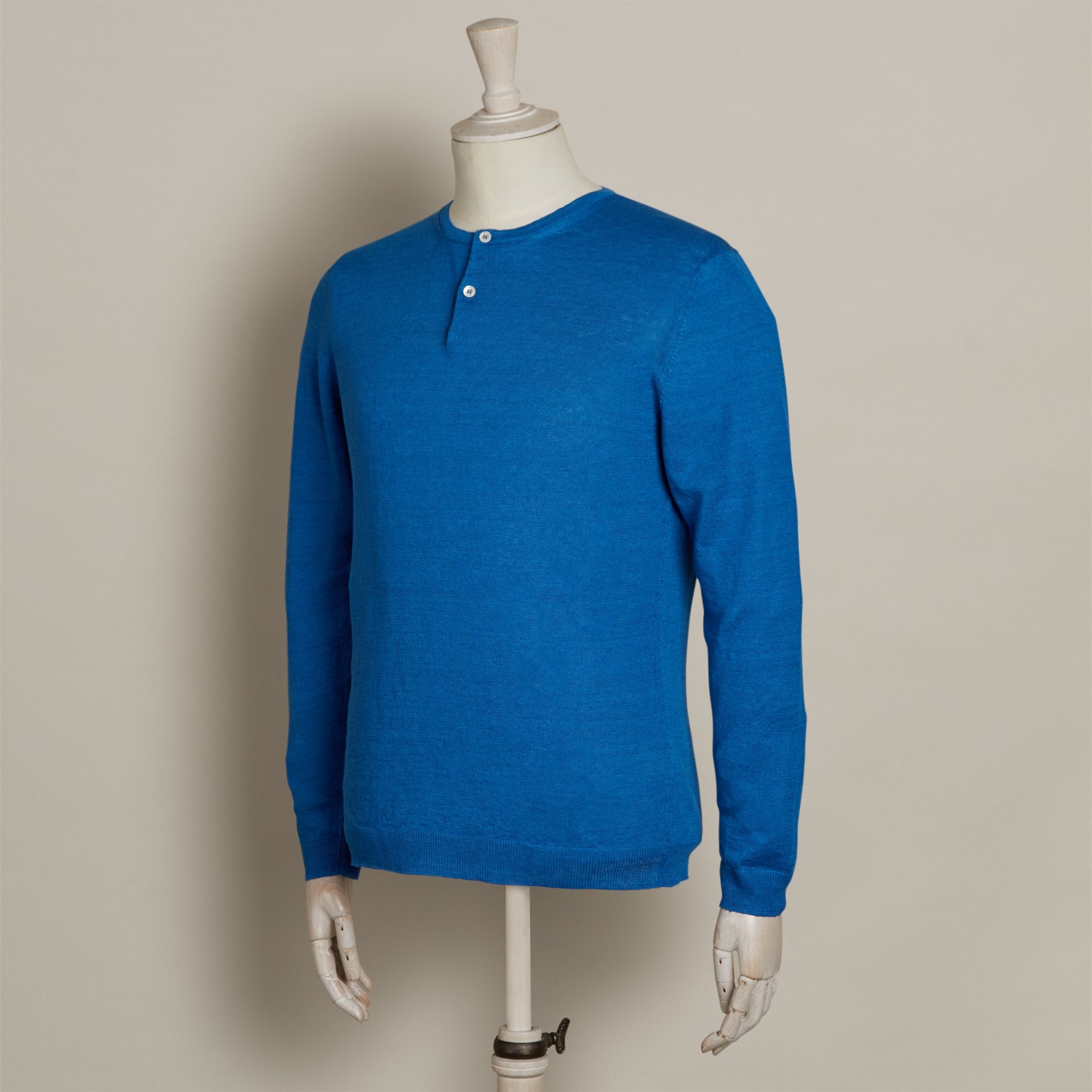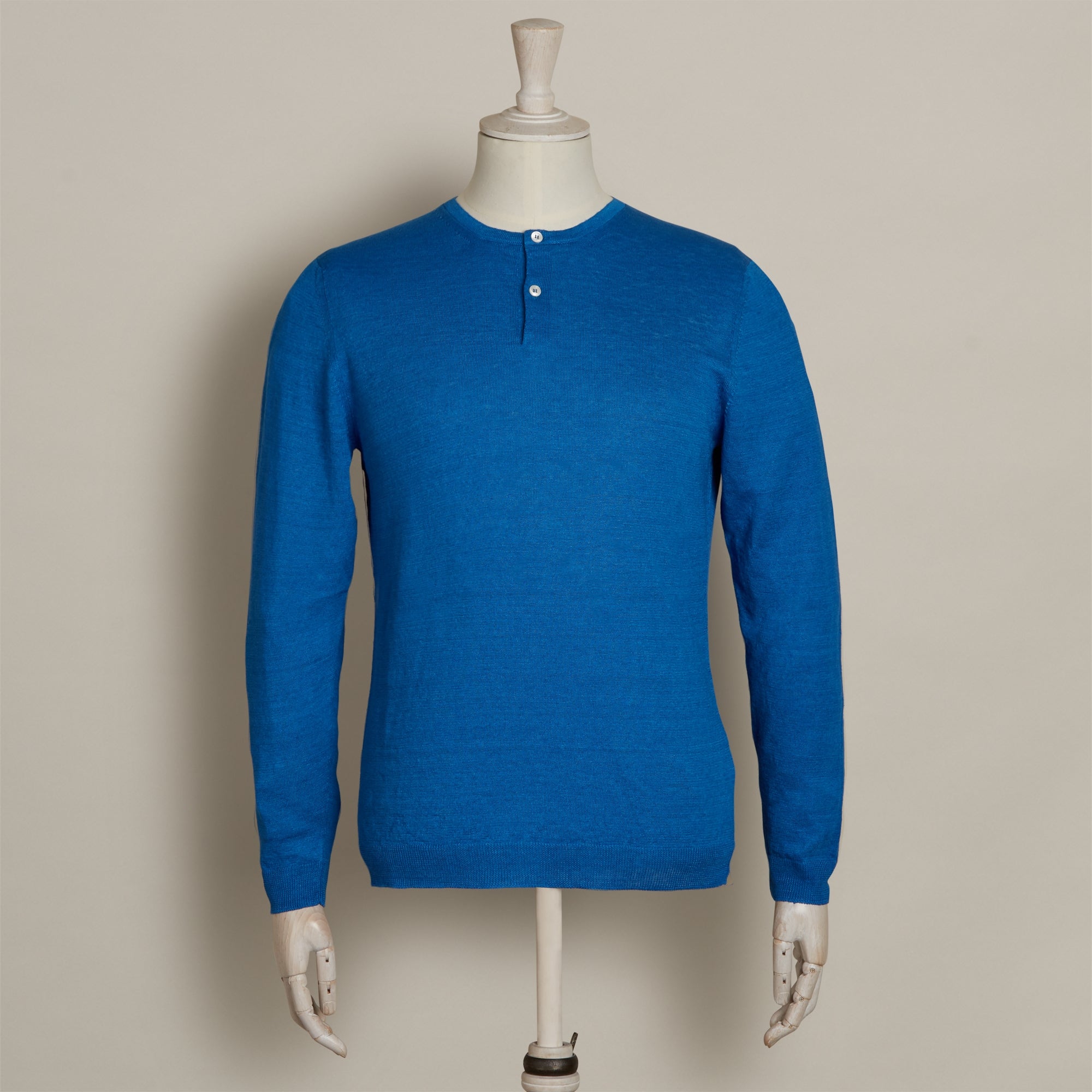 Knitted Linen Henley Shirt In Blue
