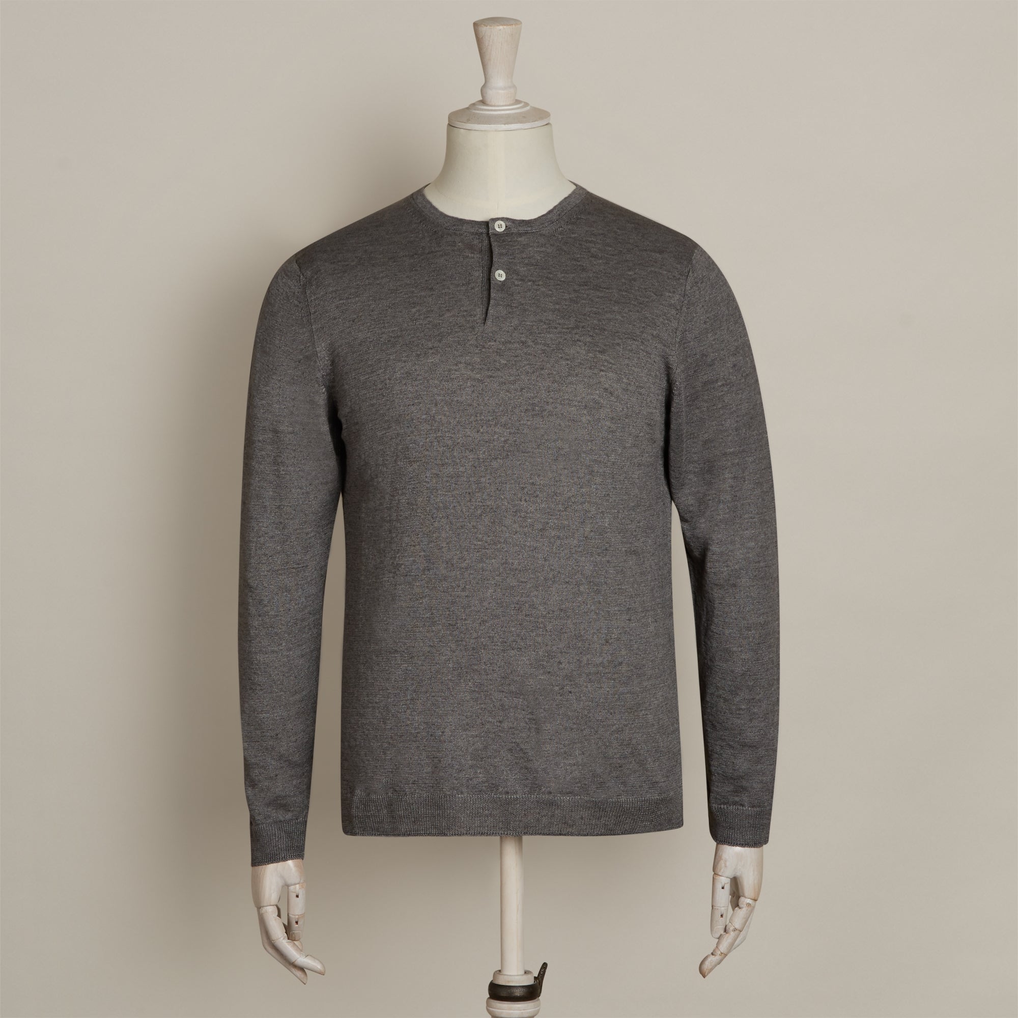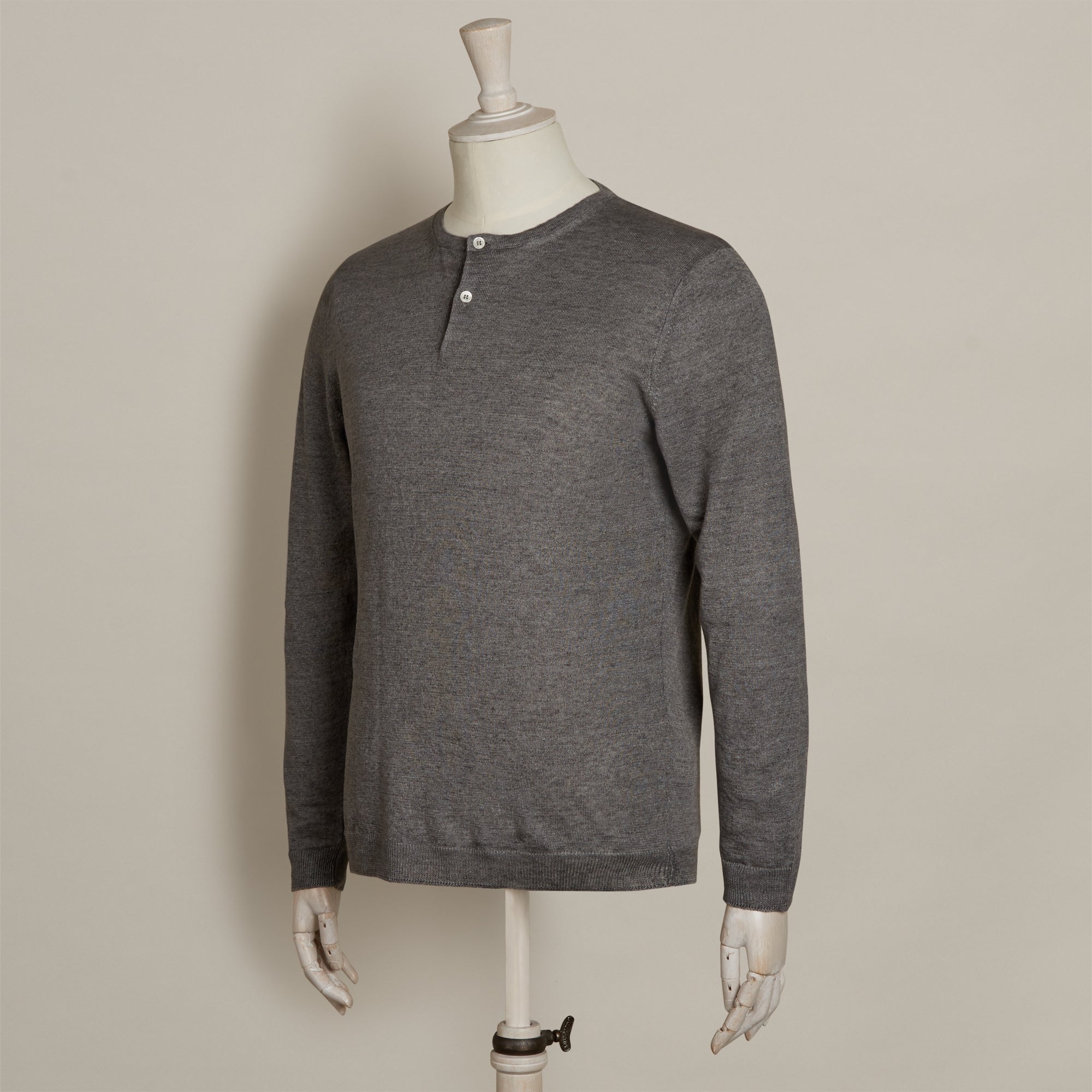 Knitted Linen Henley Shirt In Grey