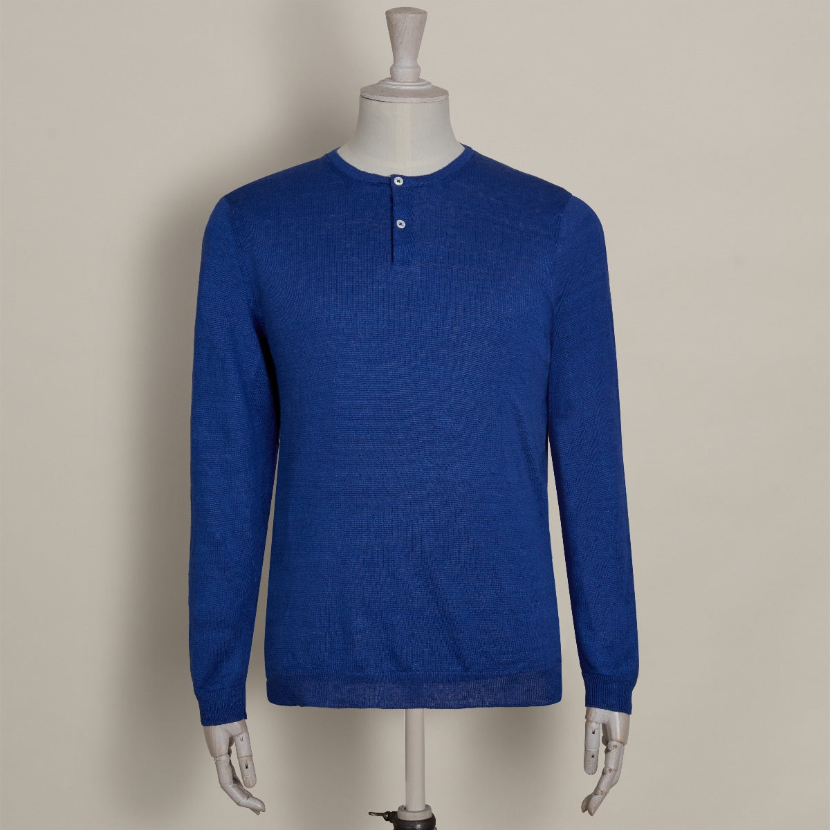 A brilliant addition to your summer wardrobe, this linen Henley t shirt features long sleeves and a relaxed fit. It’s knitted texture will keep you cool in the heat and looks fantastic paired with linen shorts or cotton trousers. Also available in a short-sleeved version.
