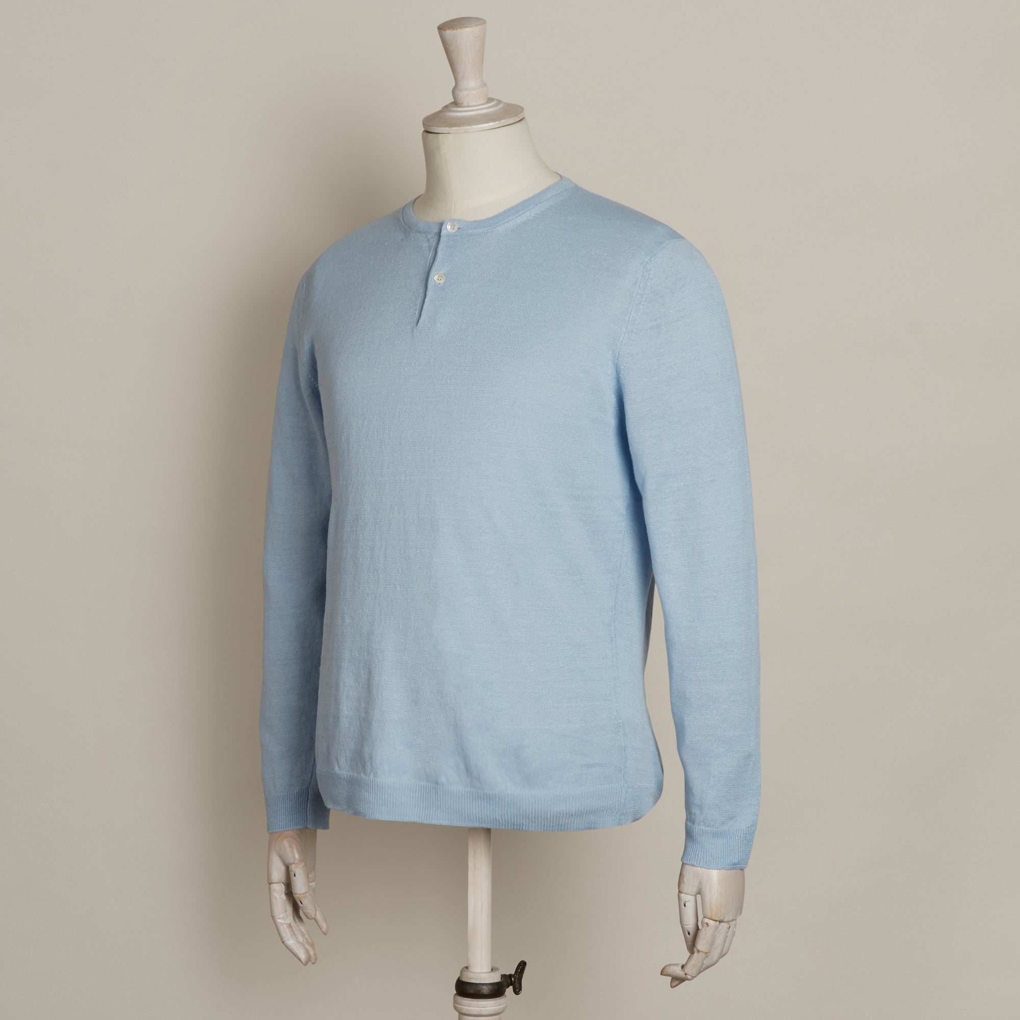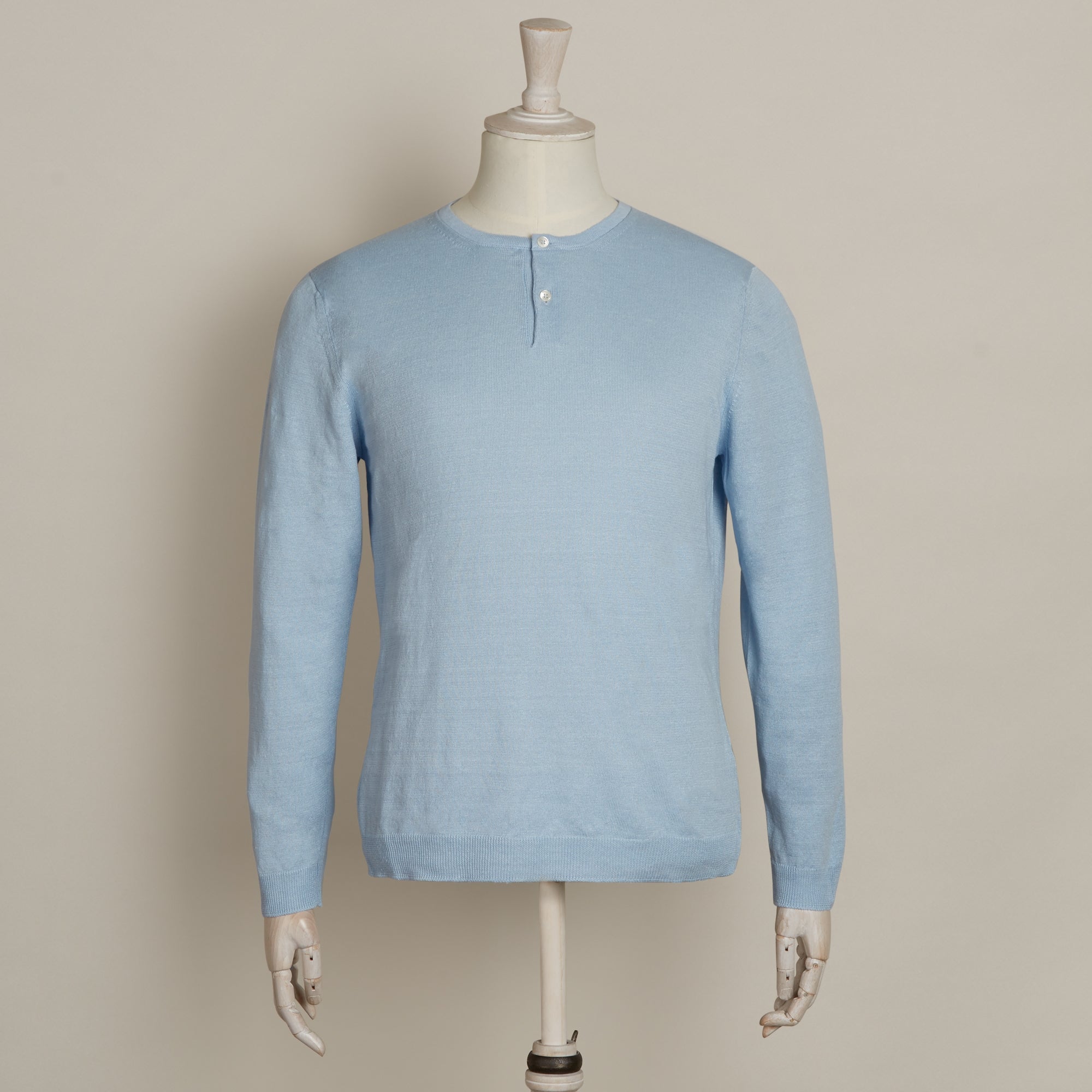 A brilliant addition to your summer wardrobe, this linen Henley t shirt features long sleeves and a relaxed fit. It’s knitted texture will keep you cool in the heat and looks fantastic paired with linen shorts or cotton trousers. Also available in a short-sleeved version.
