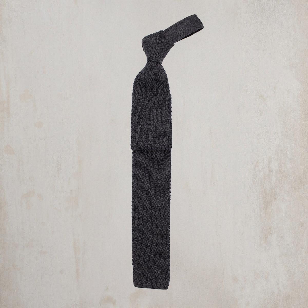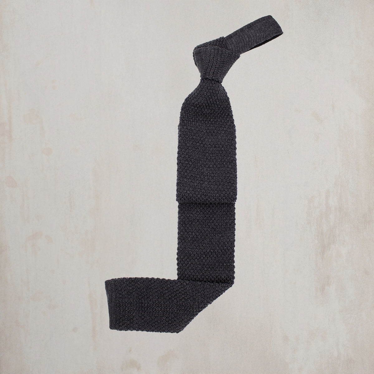 For the man who prefers a knitted tie in his accessories armoury. This square end one will work with suiting or a separate jacket, and also looks great with a collar underneath a crew neck sweater. Wear yours with a thicker shirt for additional texture.