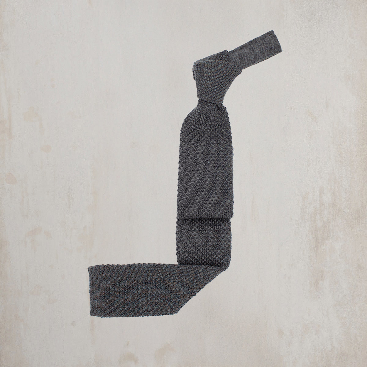 For the man who prefers a knitted tie in his accessories armoury. This square end one will work with suiting or a separate jacket, and also looks great with a collar underneath a crew neck sweater. Wear yours with a thicker shirt for additional texture.