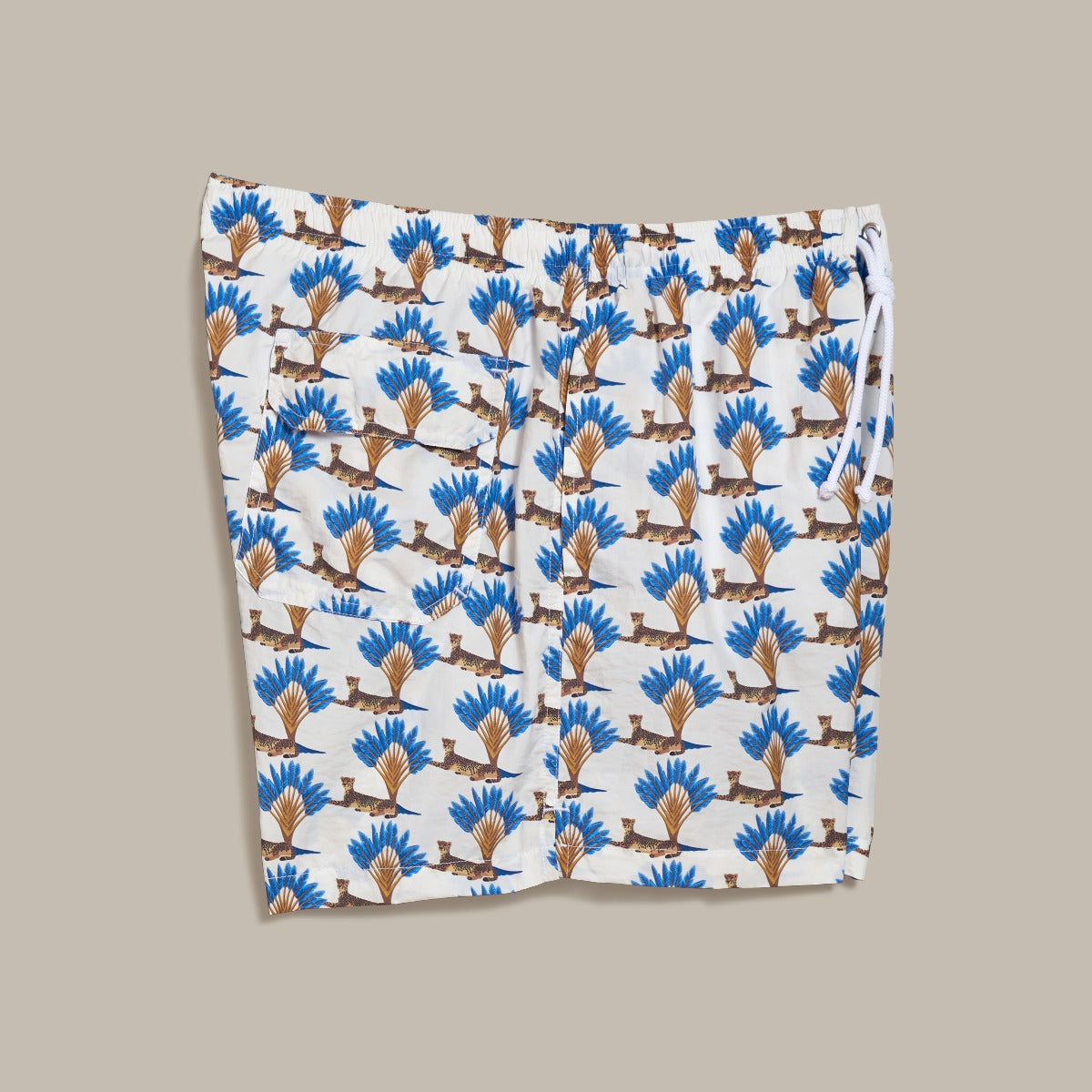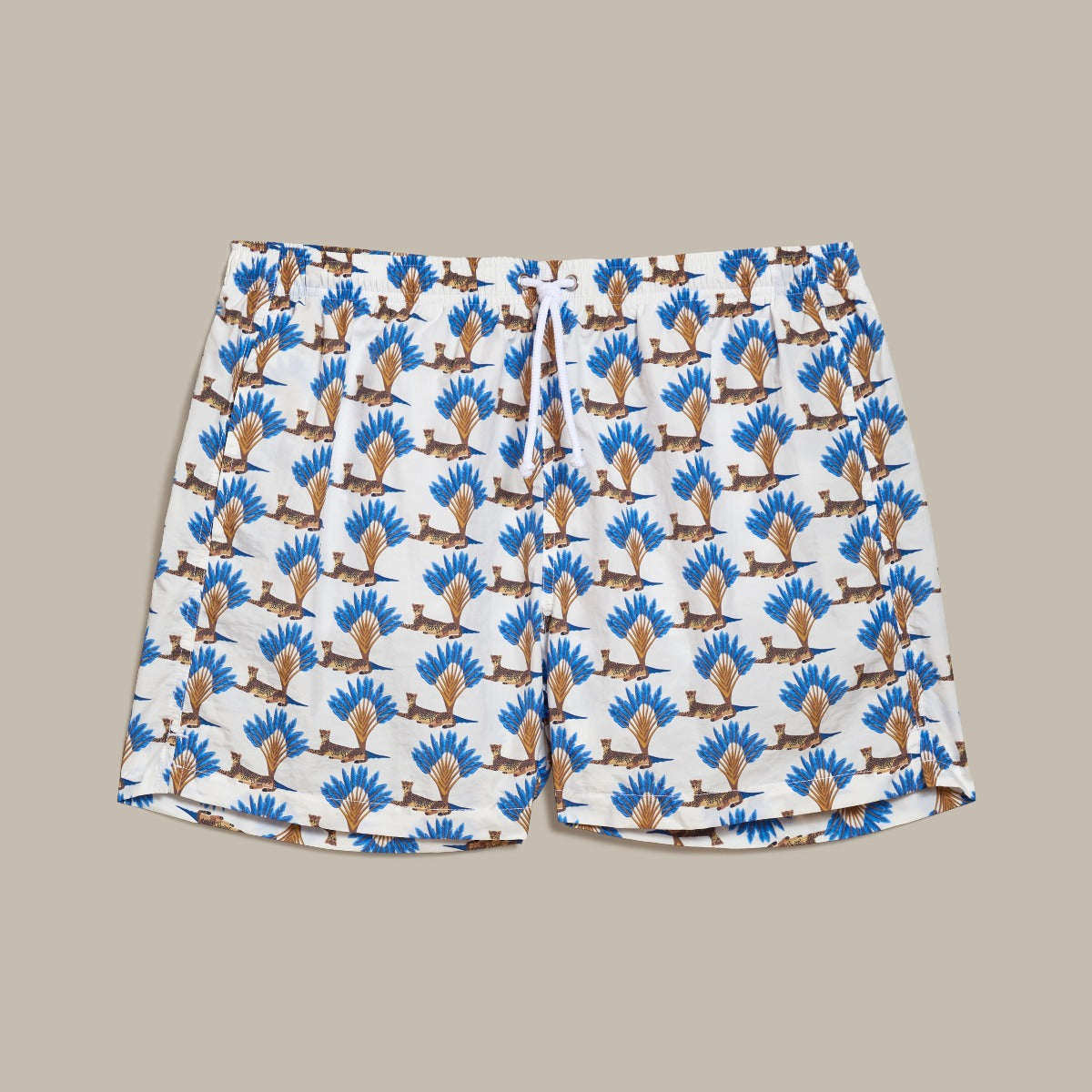 These fabulous leopard print swim shorts are made in Polyamide, a high-tech fabric known for being extremely fast drying. Ideal for when you need to get from the sea to the beach bar quickly! With a cotton mesh inner lining for extra comfort, two side pockets and a back pocket with Velcro fastening, these swim shorts also feature an elasticated waist with drawstring ties.