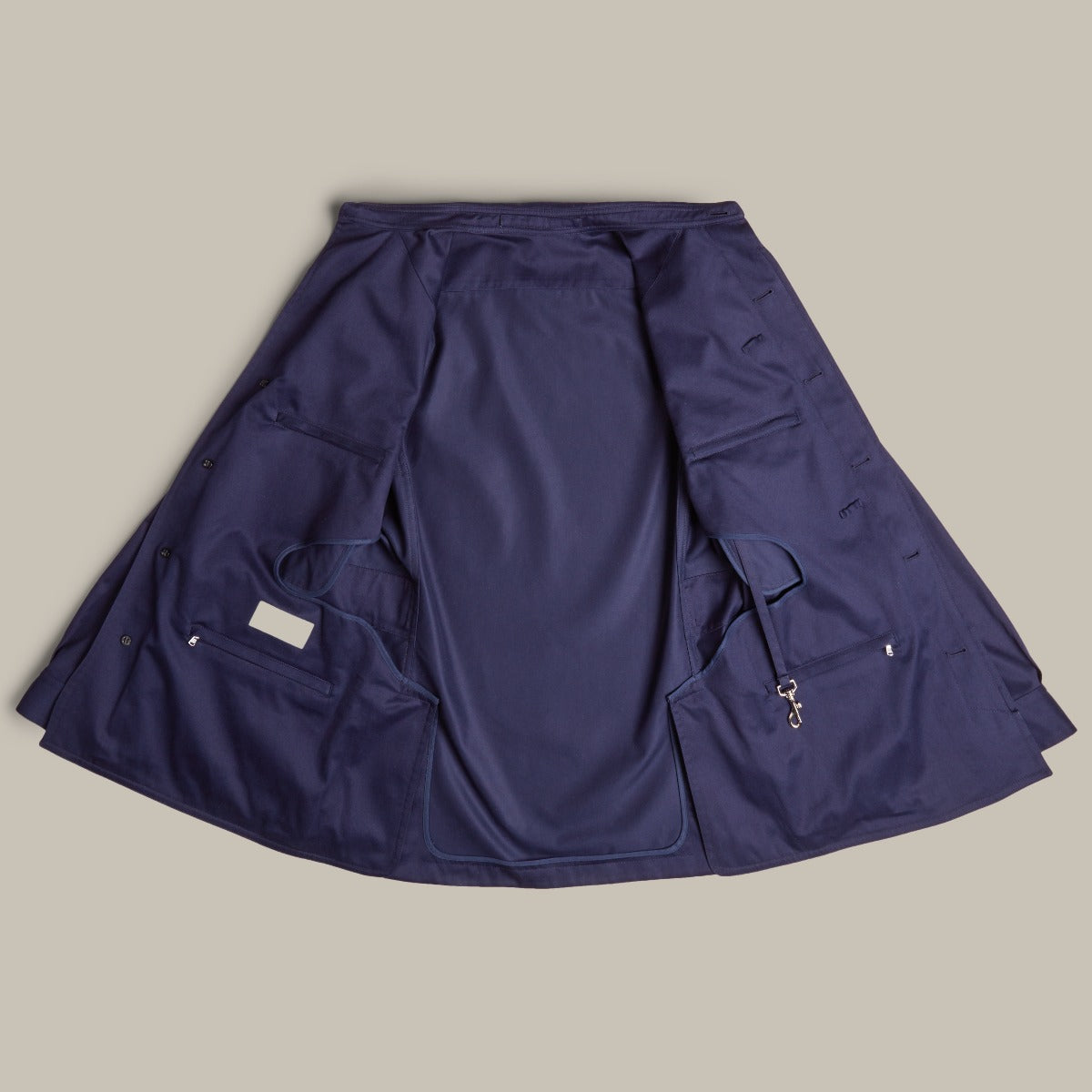 The lightweight cotton version of one of our all-time favourites, this jacket is the perfect piece to wear in the summer or when travelling. It features fifteen pockets: including four exterior patch pockets, four interior zip pockets, two large iPad/tablet pockets and two credit card holders. The inside of the jacket houses two ear-phone loops and a detachable keyring strap.
