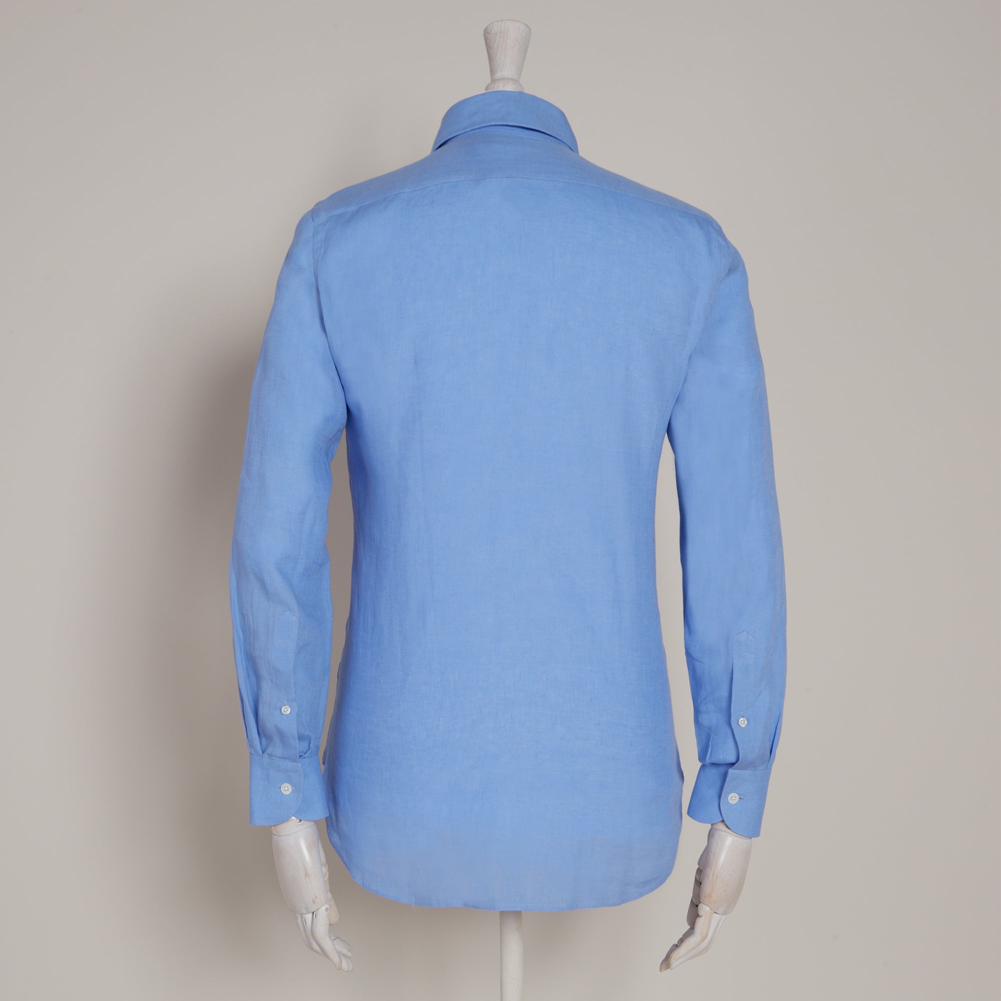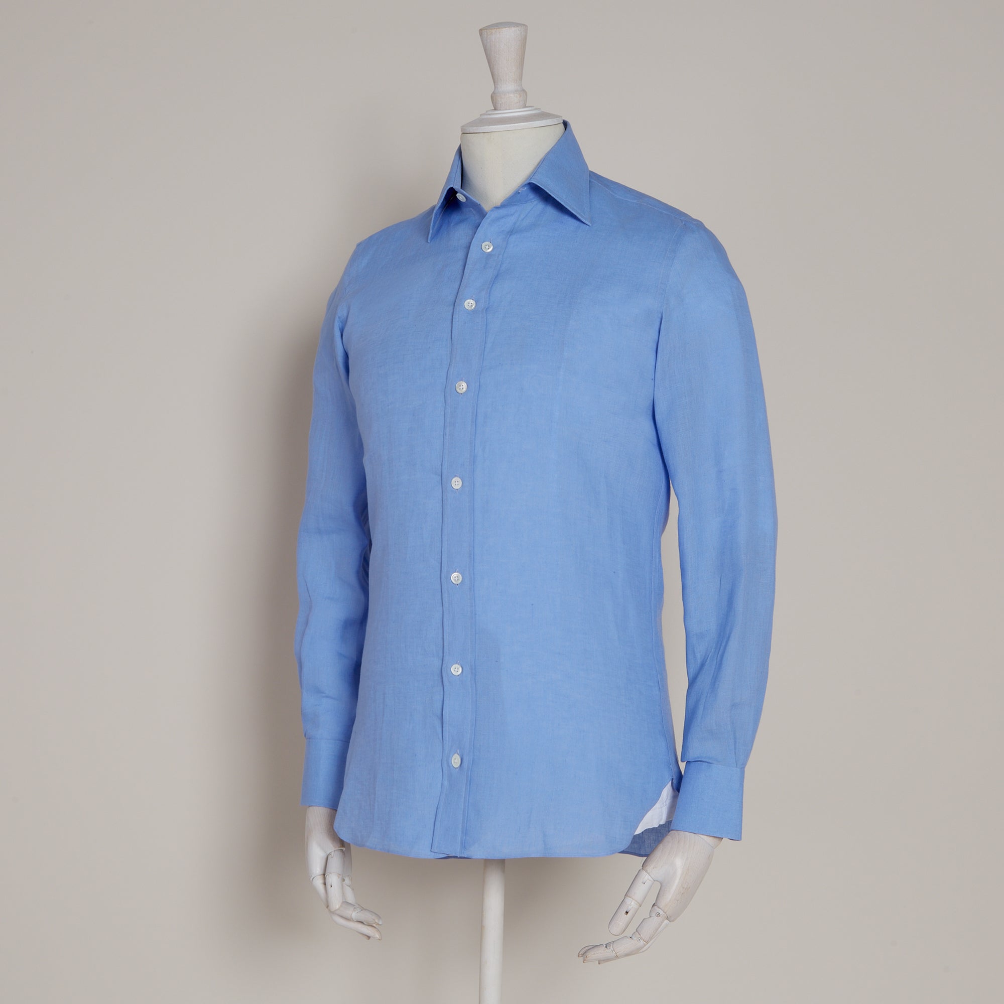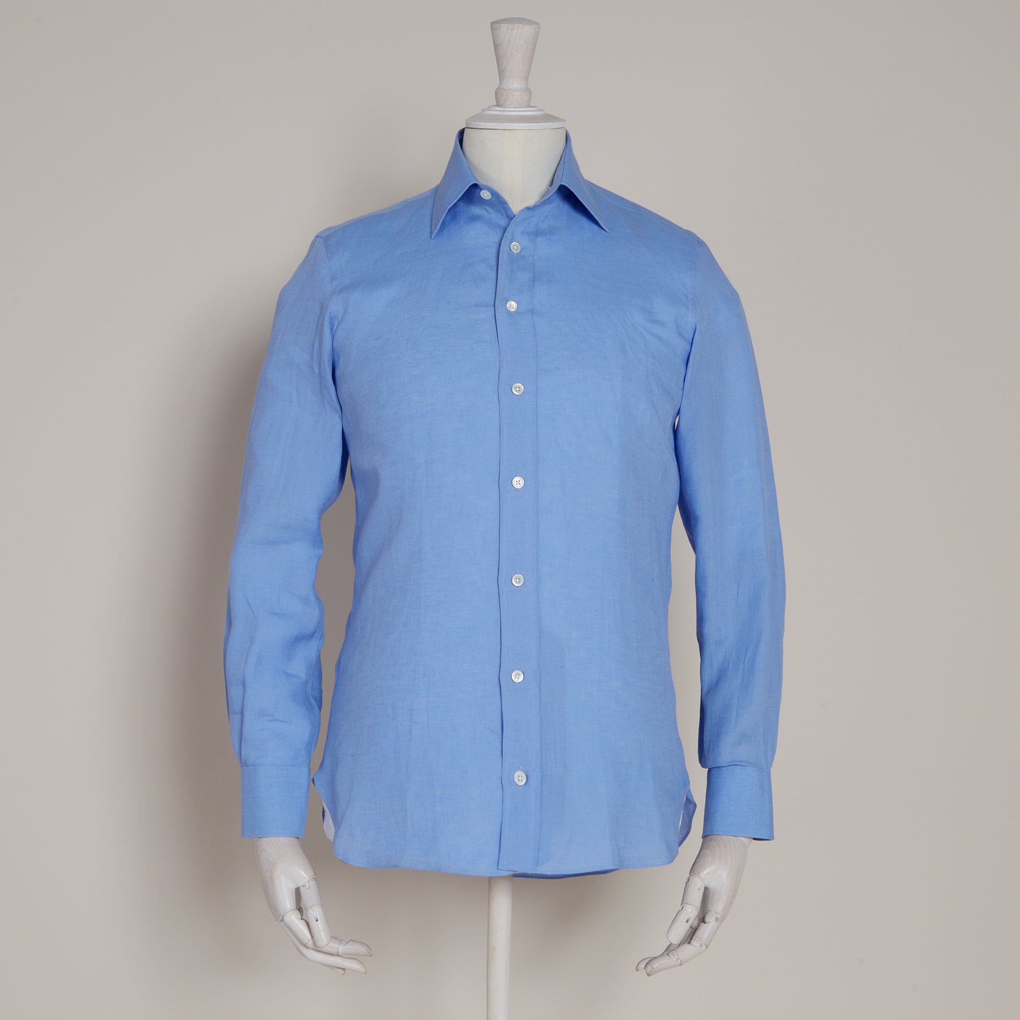 Our classic shirt in cool summer linen. Featuring one button cuffs, a deep collar and tiny stitching, this is the perfect addition to your formalwear wardrobe. Wear during the warmer months in place of cotton poplin.