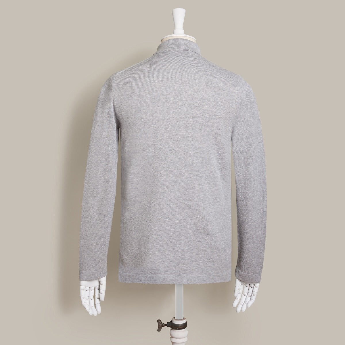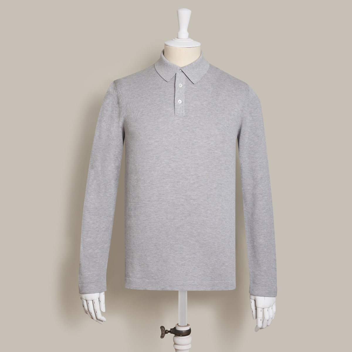 Long Sleeve Knitted Polo Shirt In Light Grey