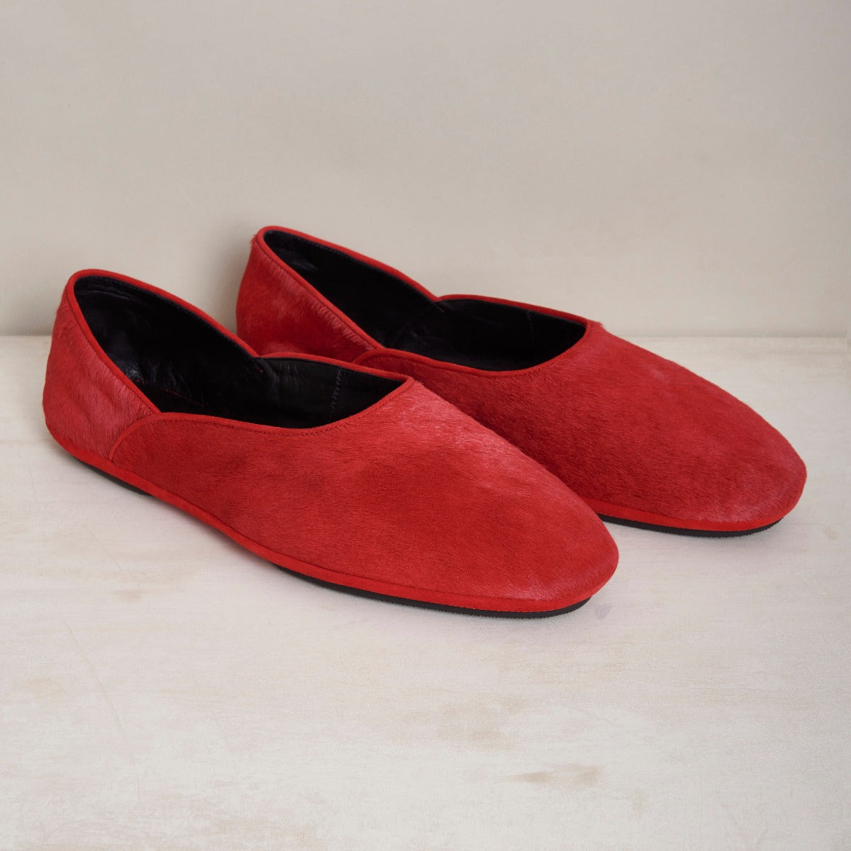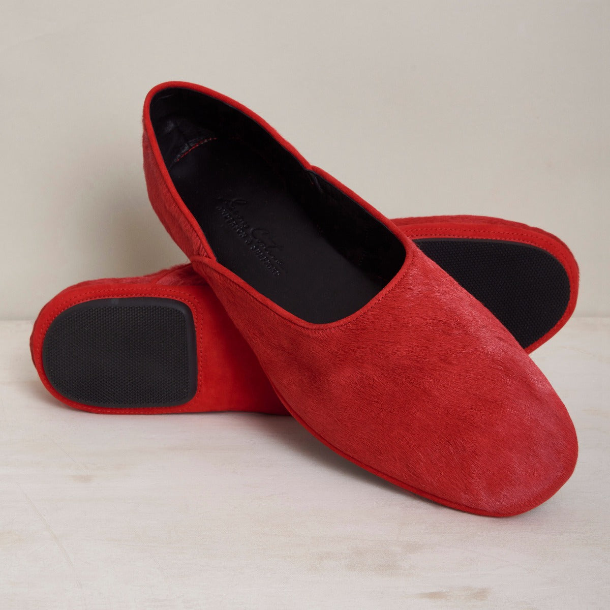 George Cortina For Anderson & Sheppard Plain Pony Hair Slippers In Dark Red