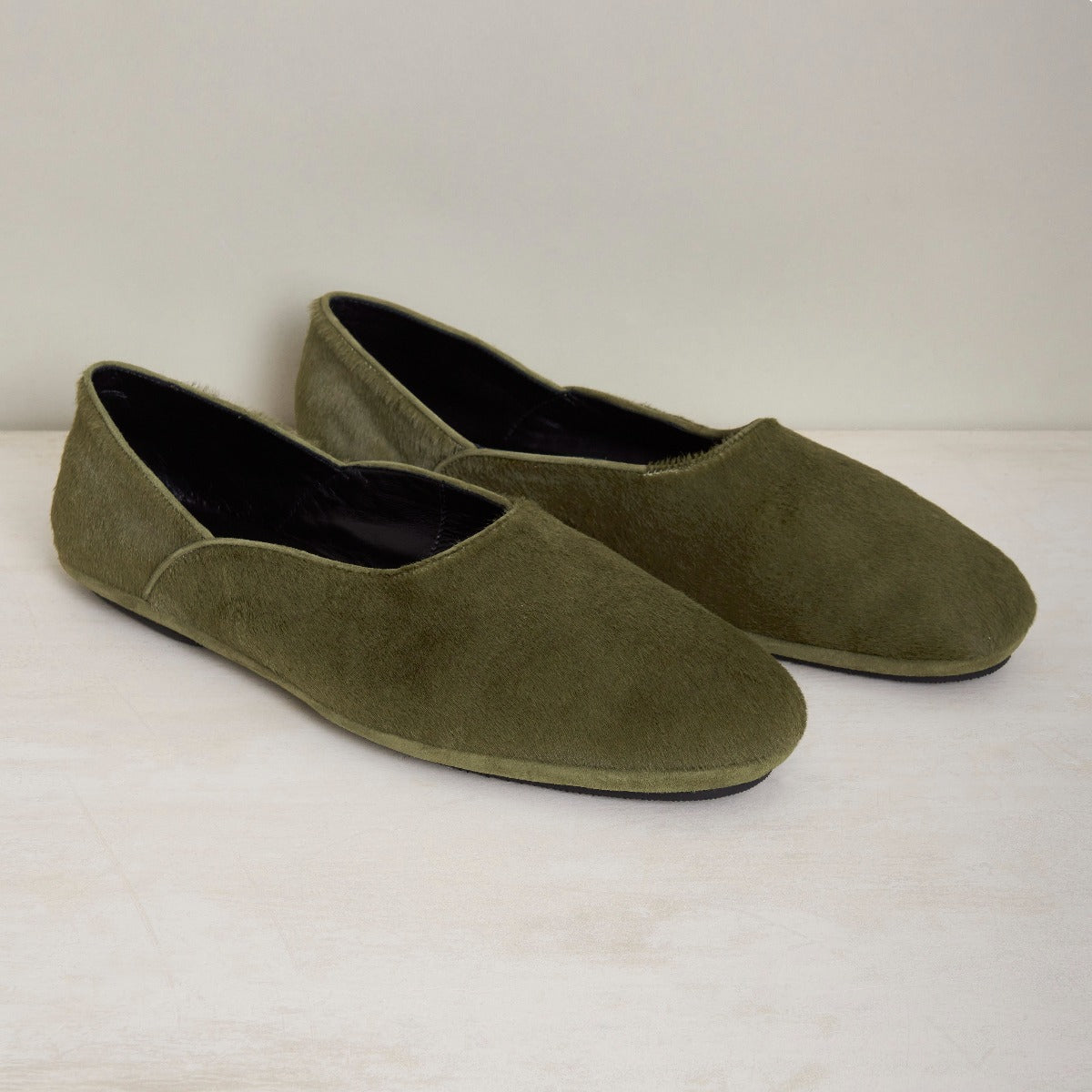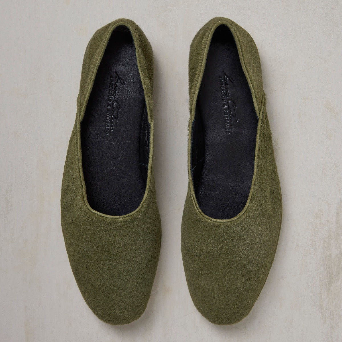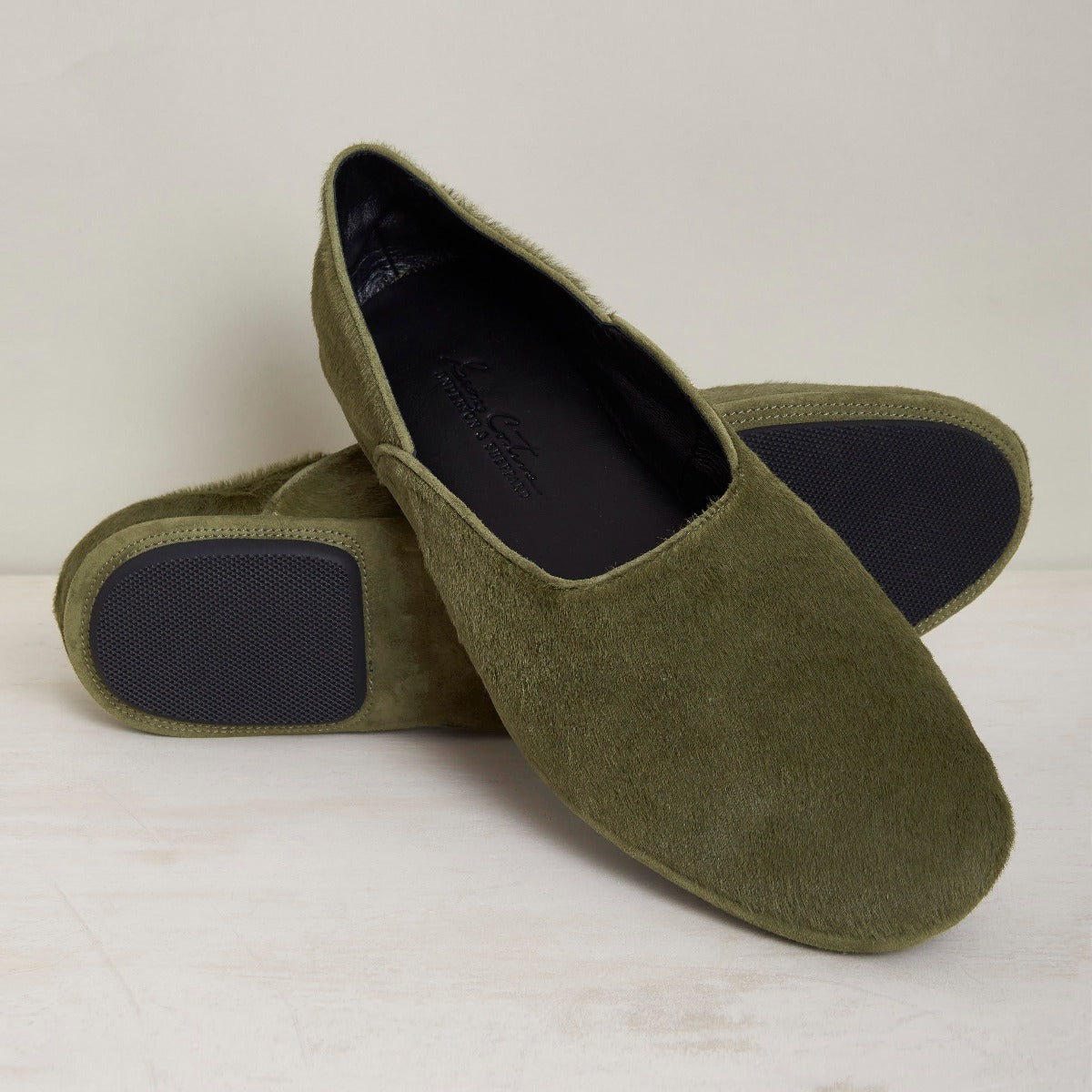 George Cortina For Anderson & Sheppard Plain Pony Hair Slippers In Khaki