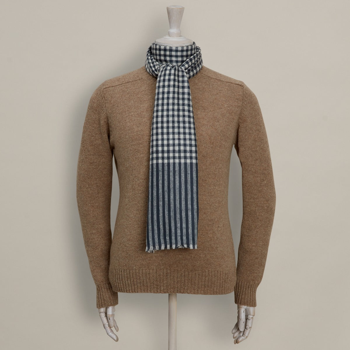 This mini check scarf is made by a small family run business in India. It has been hand woven and hand dyed using traditional techniques and features fringed edges. Due to its large size, it has a wonderful drape and can be arranged in the chicest of ways to compliment your favourite winter looks.