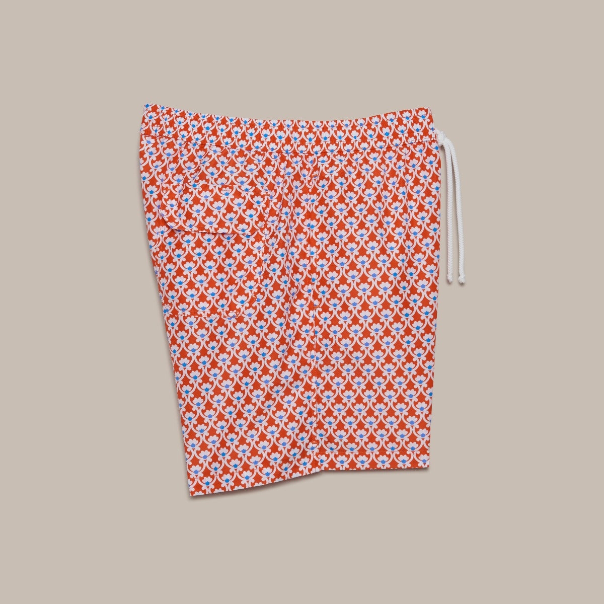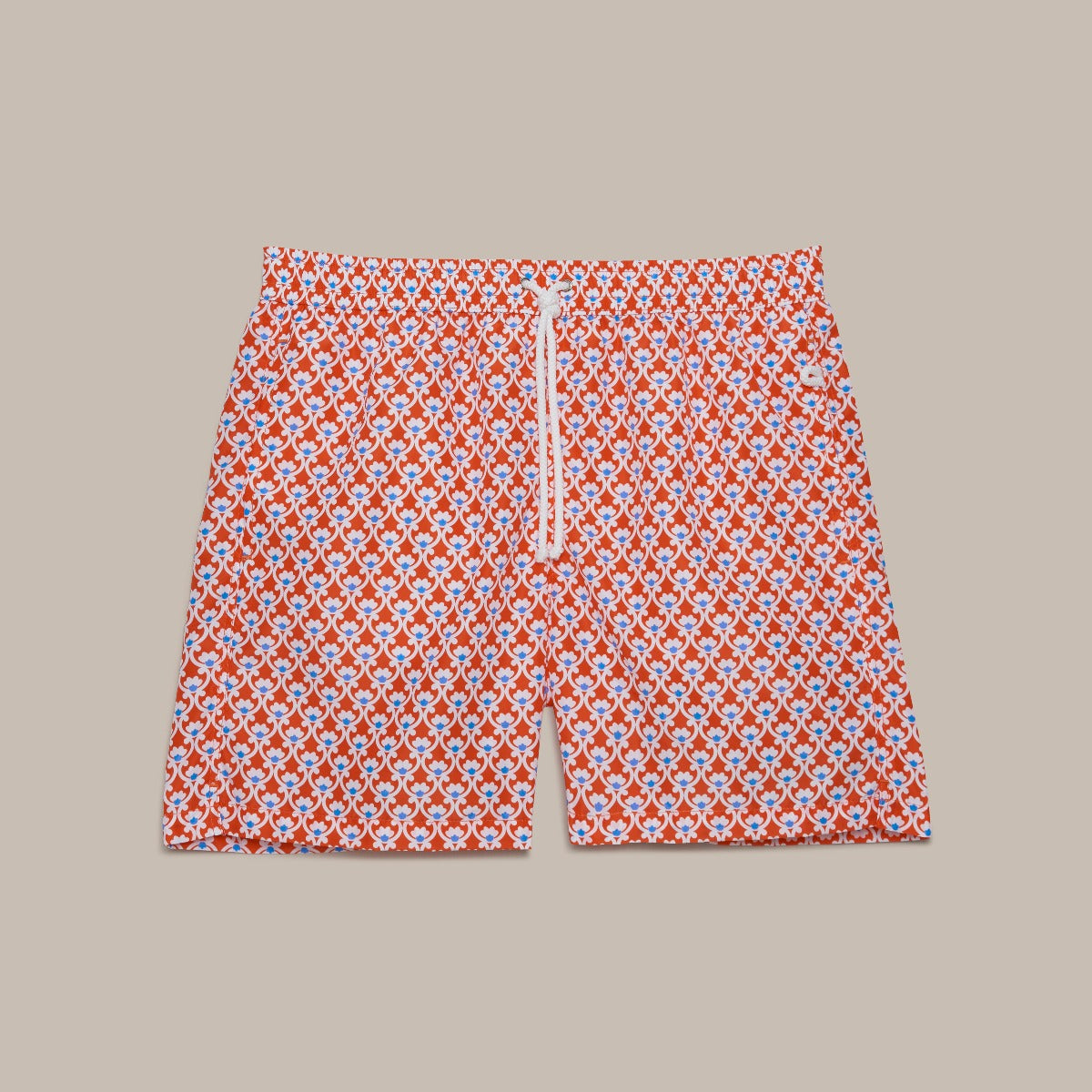 These fabulous mosaic print swim shorts are made in Polyamide, a high-tech fabric known for being extremely fast drying. Ideal for when you need to get from the sea to the beach bar quickly! With a cotton mesh inner lining for extra comfort, two side pockets and a back pocket with Velcro fastening, these swim shorts also feature an elasticated waist with drawstring ties.