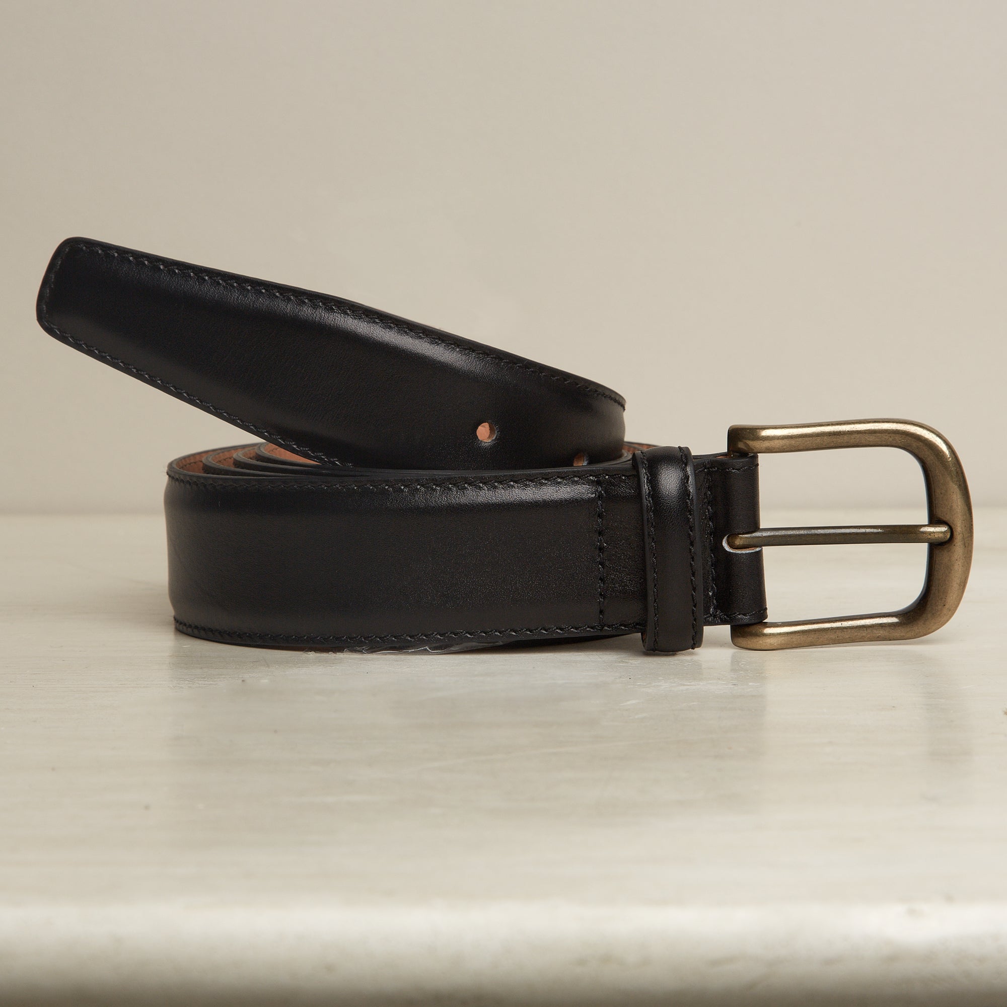 This nappa leather belt is made from luxurious and smooth calf skin leather. It has an antique brass buckle and top stitched ends, which makes this belt an ultimate versatile piece in your wardrobe. Wear it with chinos or jeans for a stylish casual look.