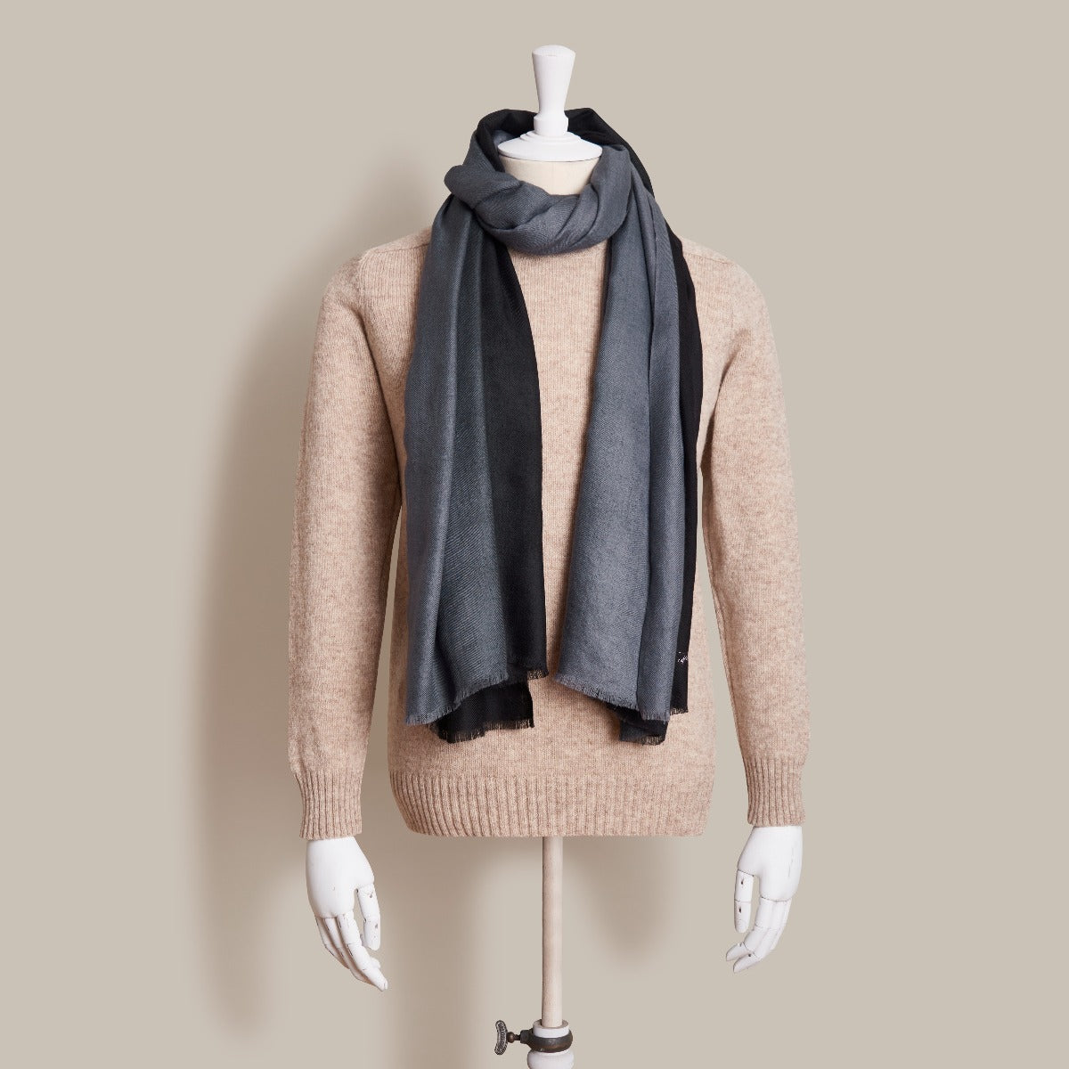 Nothing feels more supple and soft than a plain twill shawl scarf in finest cashmere. Handwoven in India using traditional techniques, this chic ombre design scarf will add warmth and texture to your favorite tonal looks.