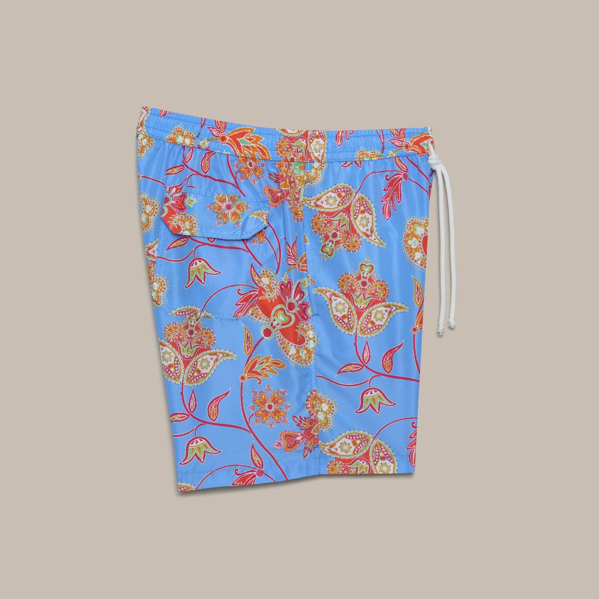 These fabulous paisley print swim shorts are made in Polyamide, a high-tech fabric known for being extremely fast drying. Ideal for when you need to get from the sea to the beach bar quickly! With a cotton mesh inner lining for extra comfort, two side pockets and a back pocket with Velcro fastening, these swim shorts also feature an elasticated waist with drawstring ties.