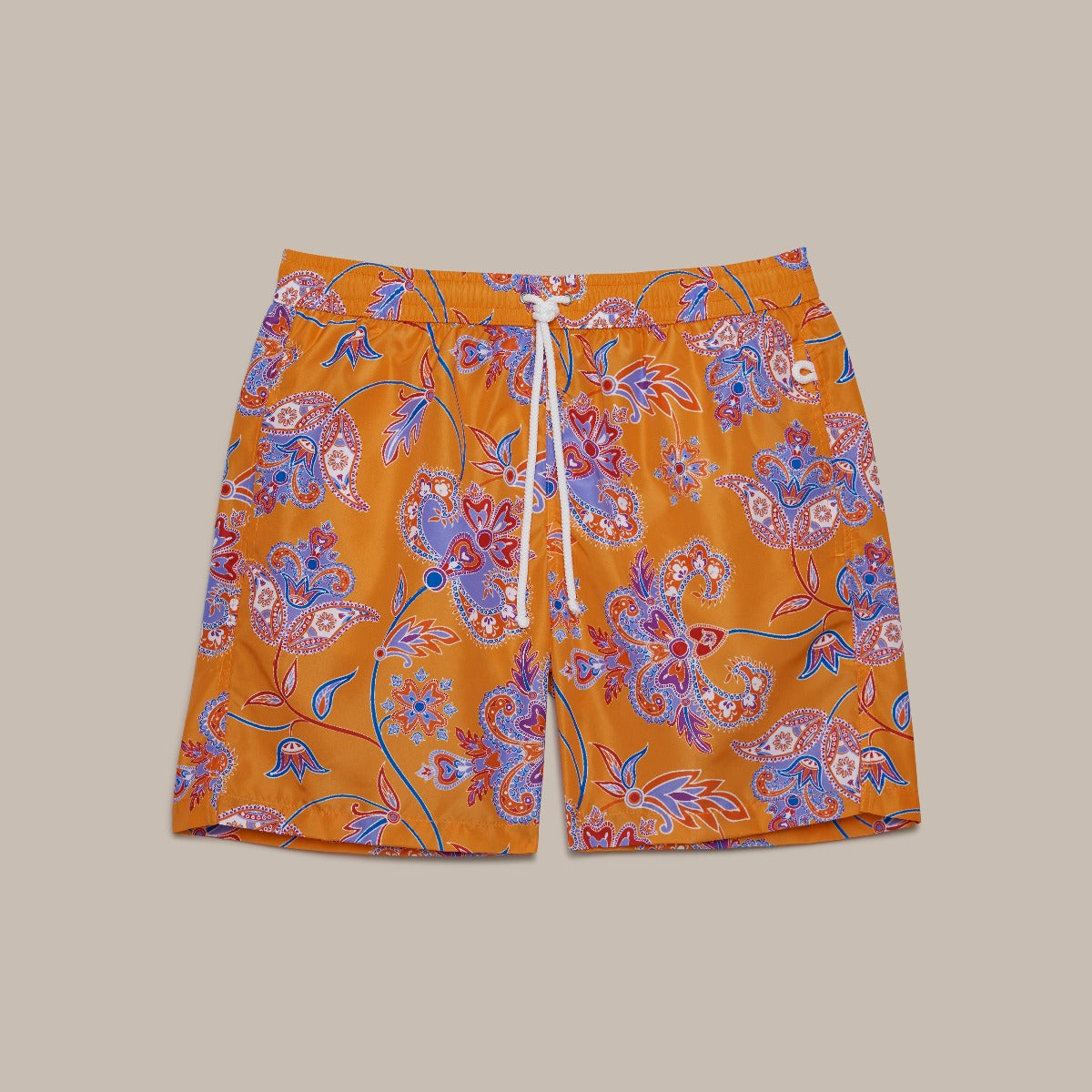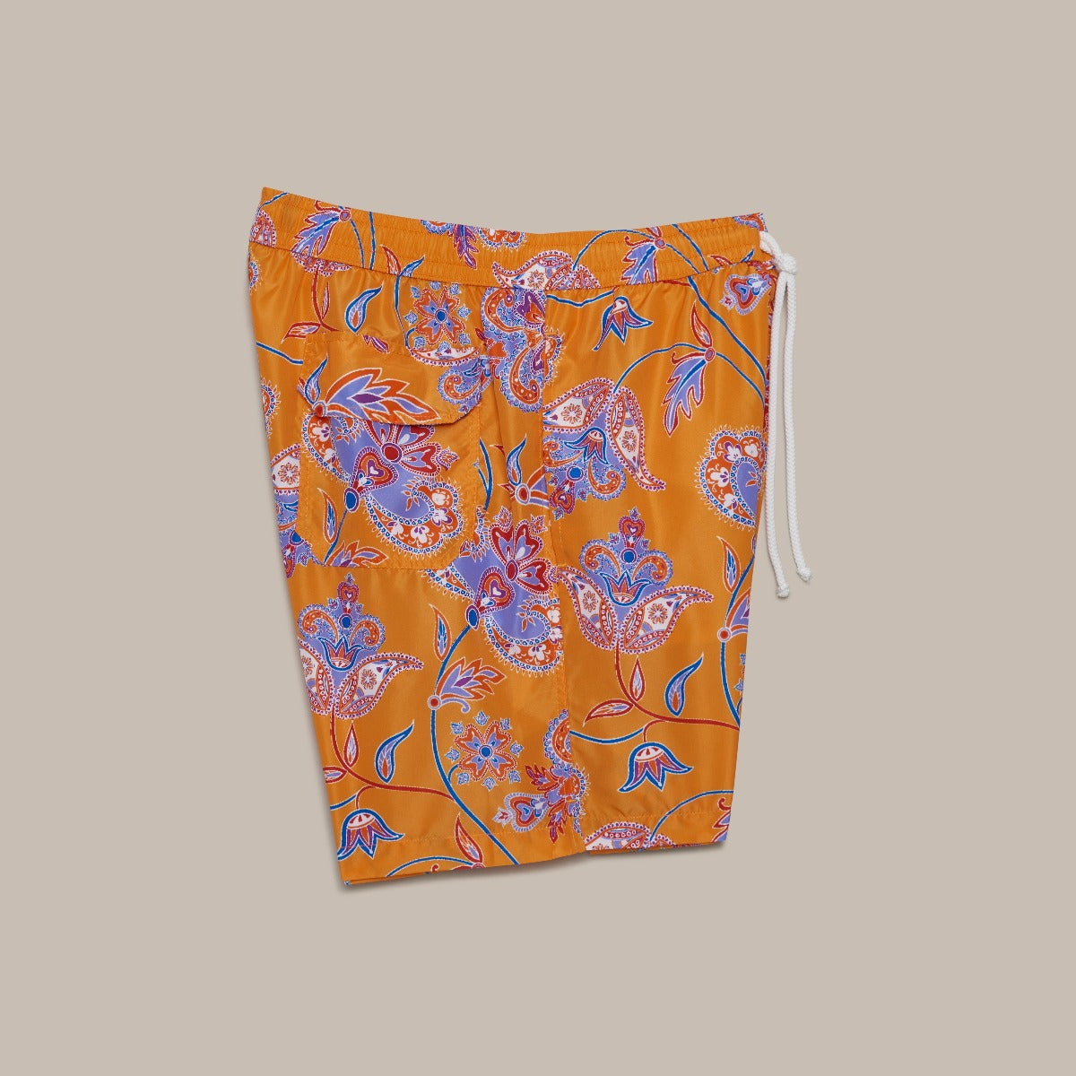 These fabulous paisley print swim shorts are made in Polyamide, a high-tech fabric known for being extremely fast drying. Ideal for when you need to get from the sea to the beach bar quickly! With a cotton mesh inner lining for extra comfort, two side pockets and a back pocket with Velcro fastening, these swim shorts also feature an elasticated waist with drawstring ties.