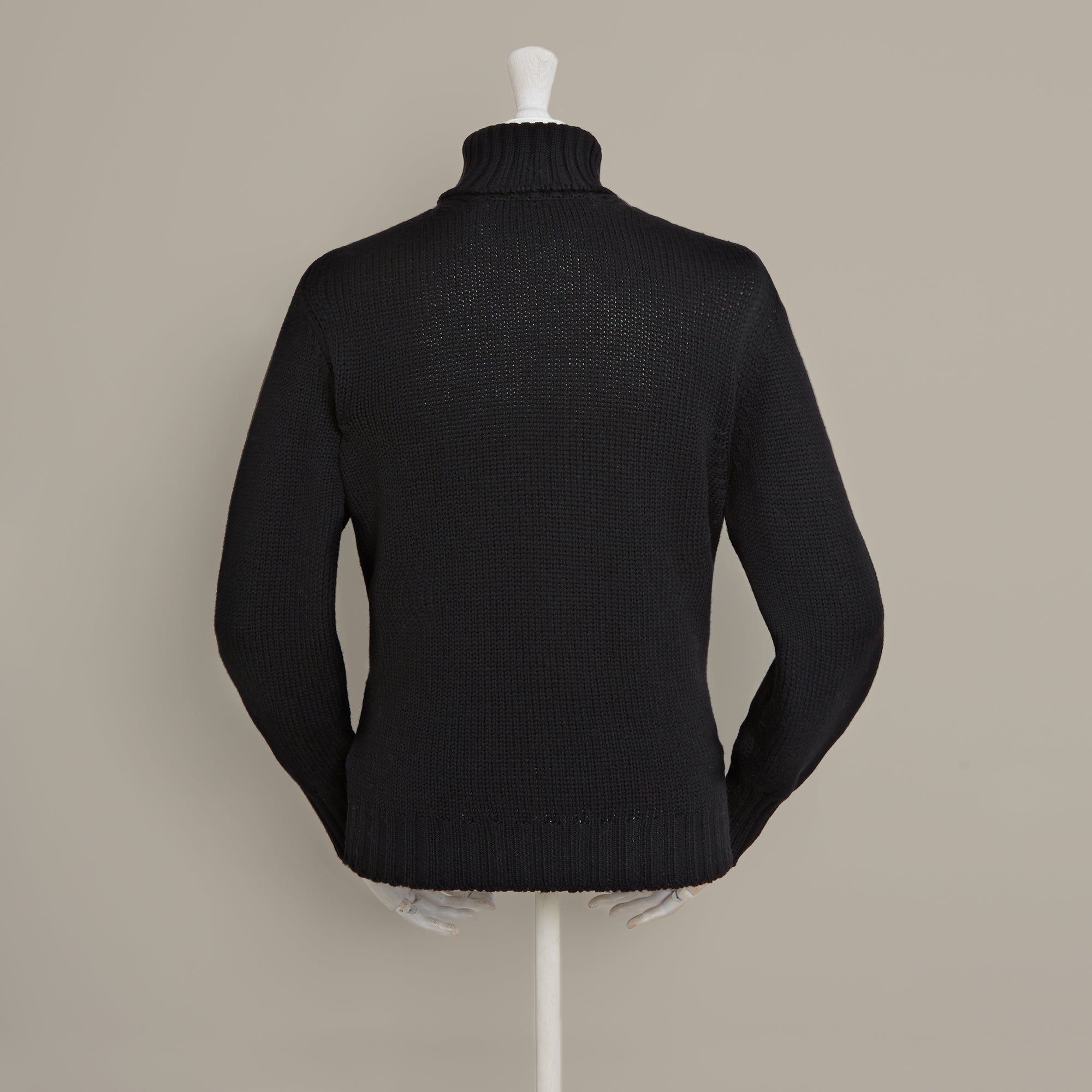 This cosy sweater is knitted from 6 ply Merino wool and is perfect for chilly days in autumn and winter. It is soft and relaxed, perfect for weekends and at home in the evenings.