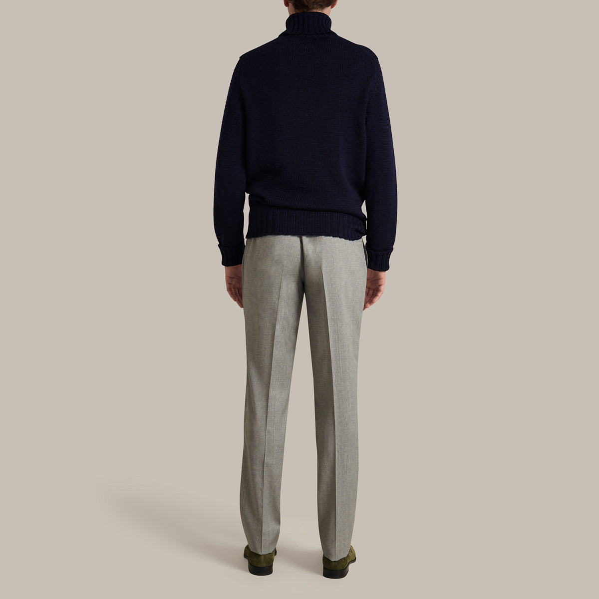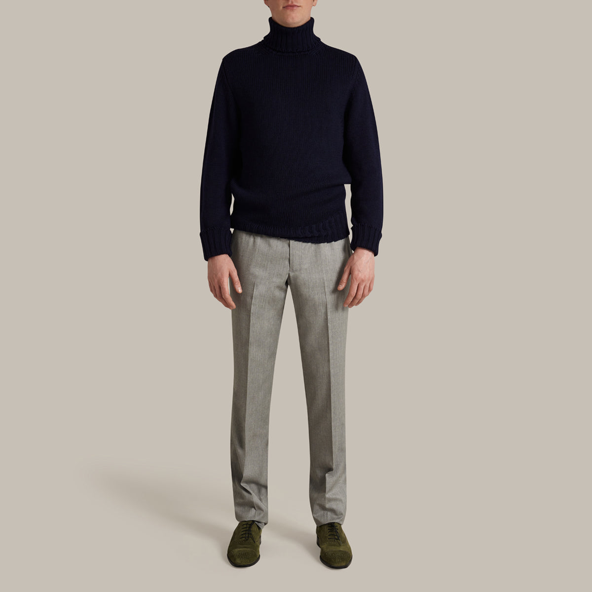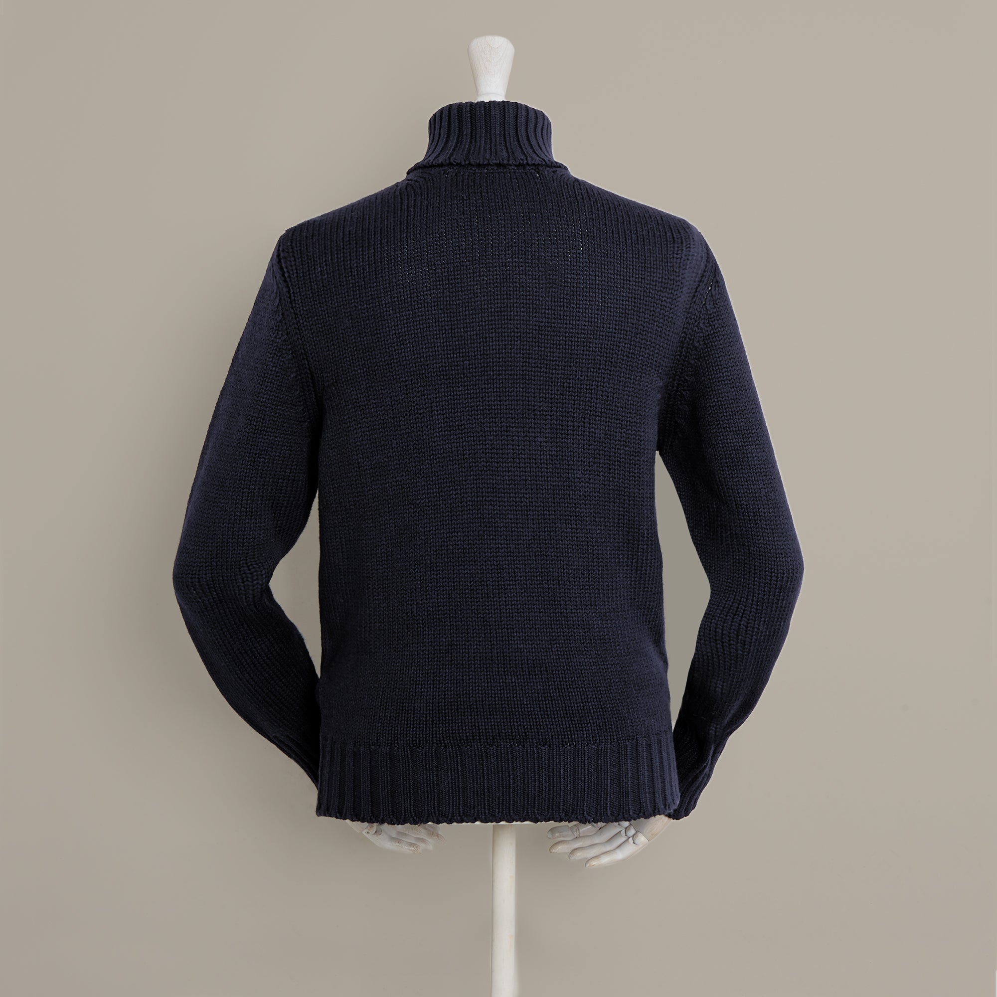 This cosy sweater is knitted from 6 ply Merino wool and is perfect for chilly days in autumn and winter. It is soft and relaxed, perfect for weekends and at home in the evenings.