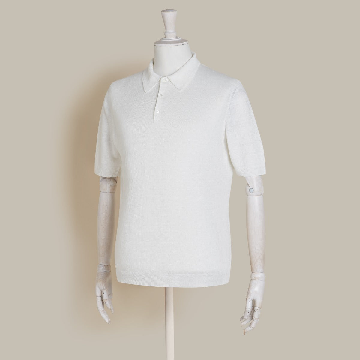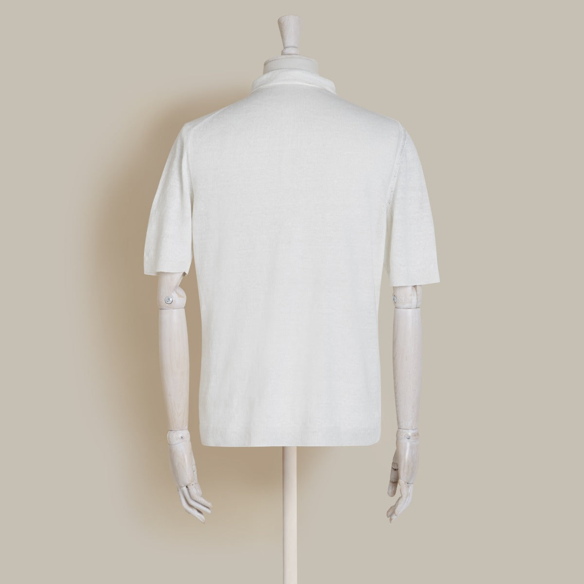 Short Sleeve Knitted Linen Polo Shirt In Off White